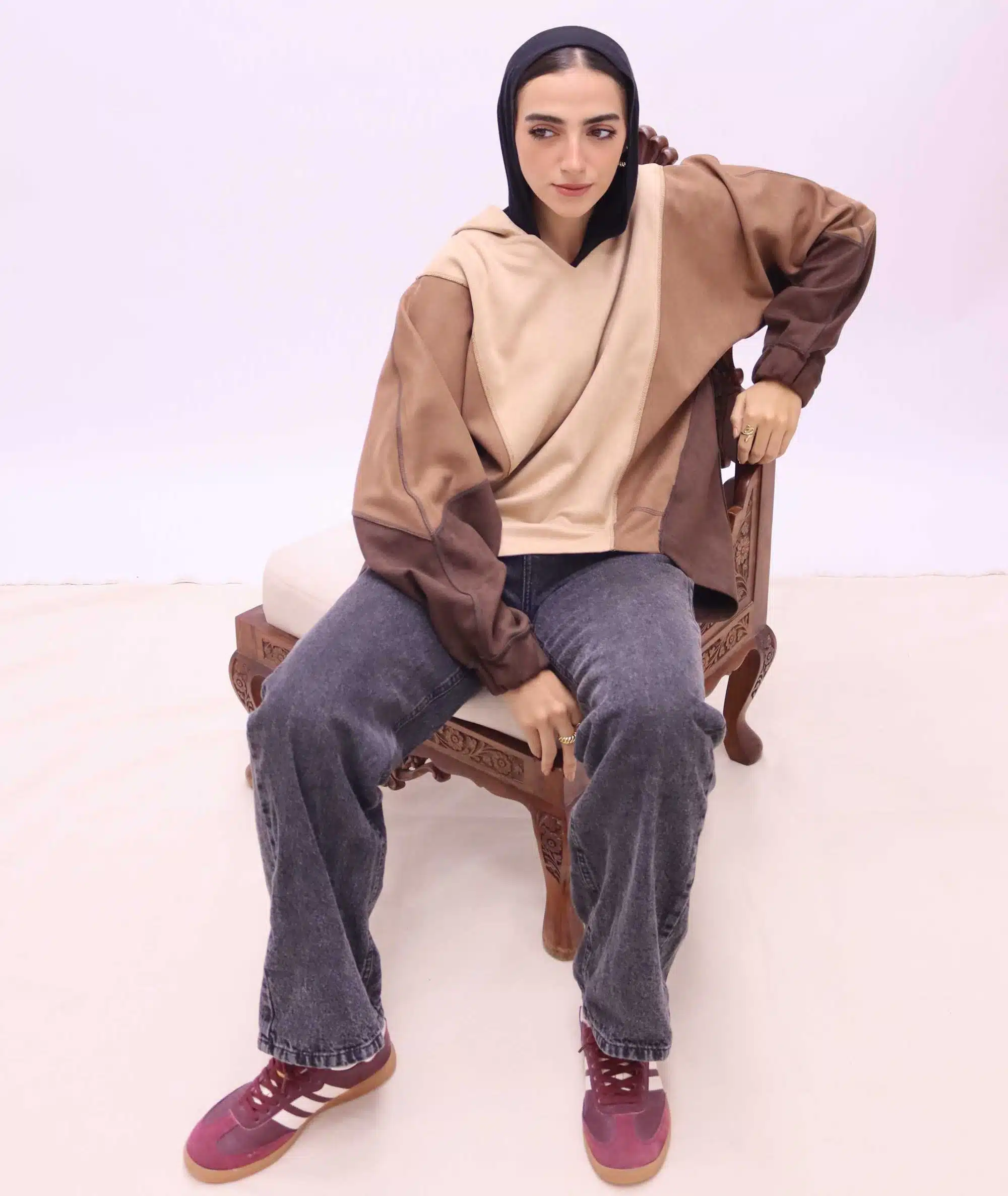 - Nude colour block sweatshirt