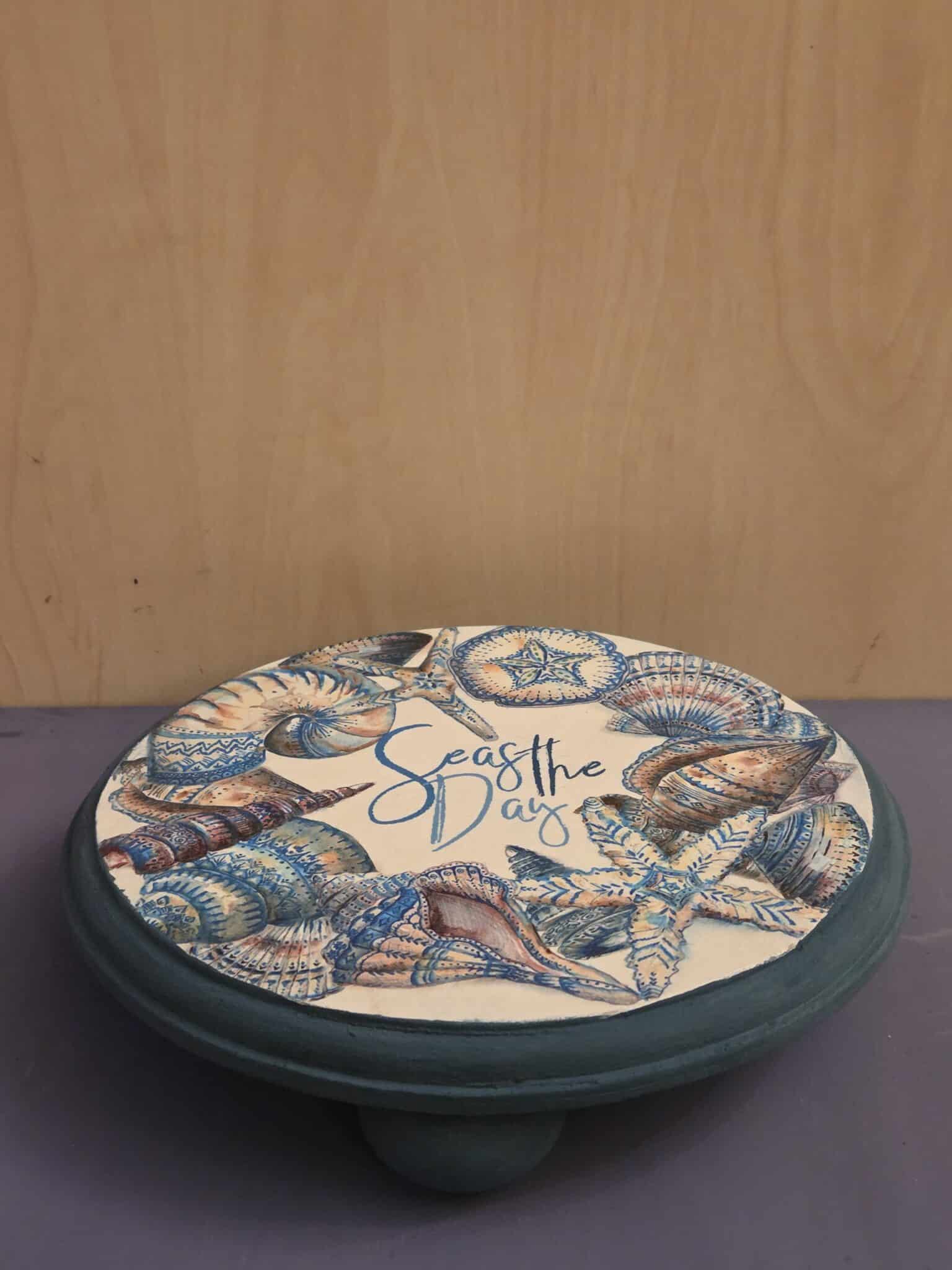 Center piece 20cm decoupaged with summer pattern can be used for decorating tables or for serving plates