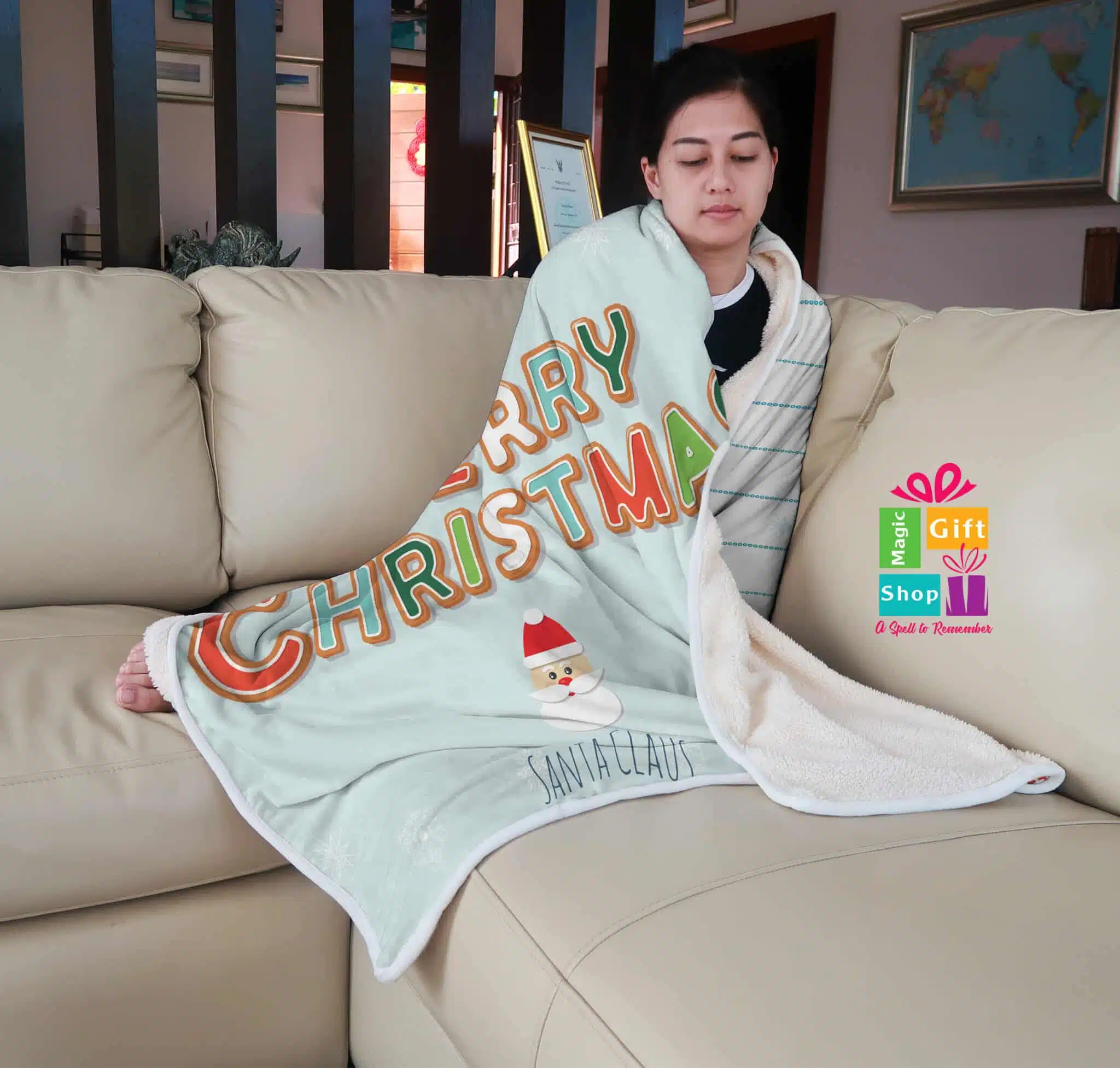 Be the first to review “Cheerfully Merry Christmas blanket” Cancel reply