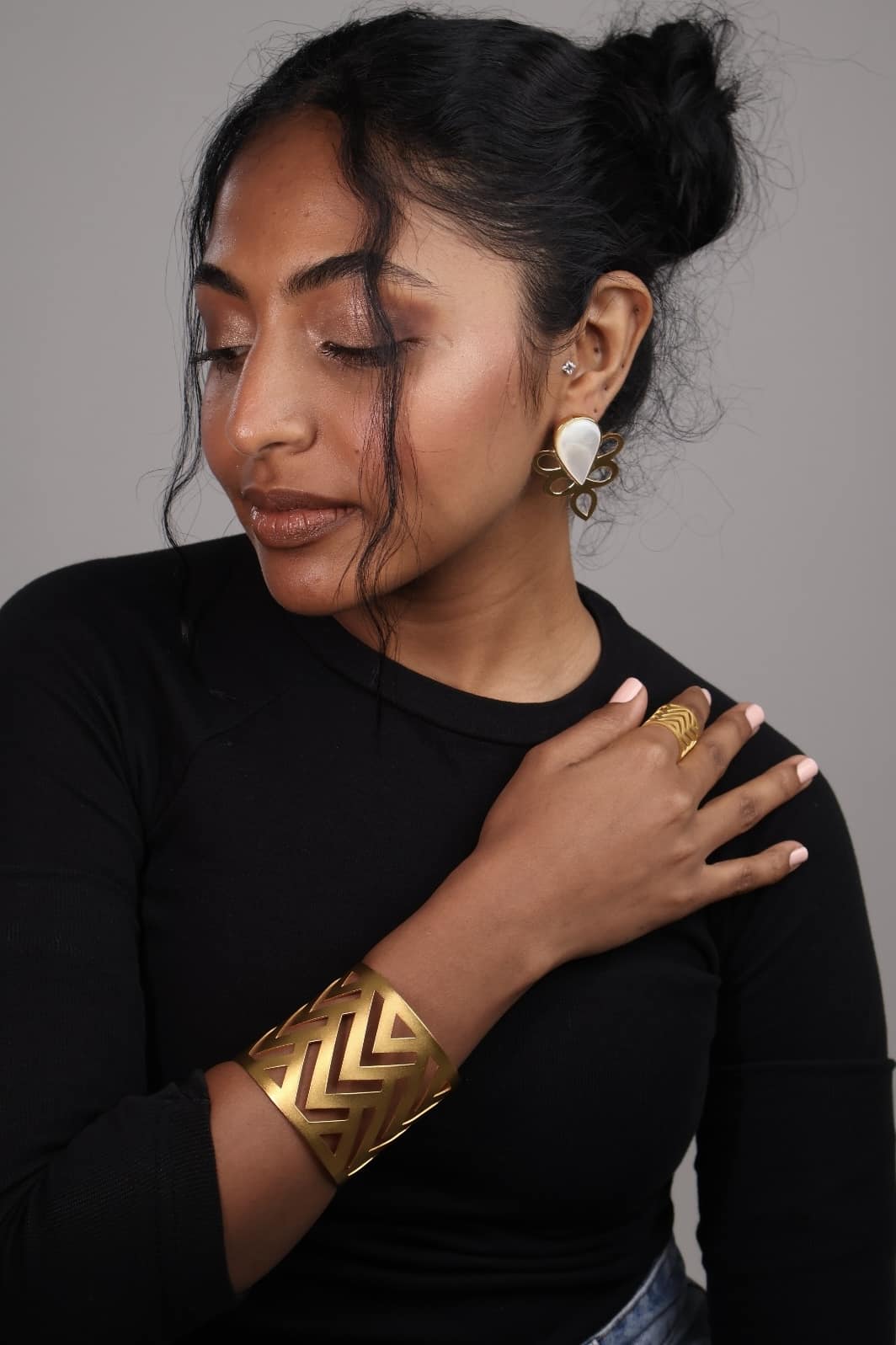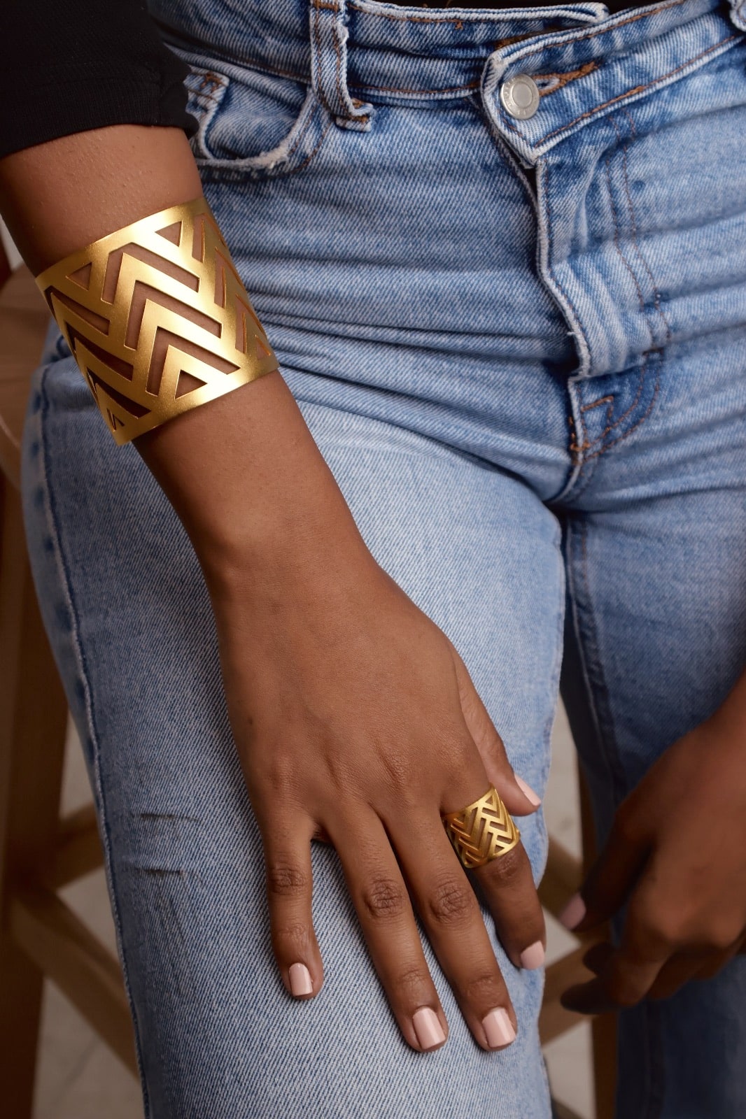 – أسورة بتجمع بين التراث والفخامة عبارة عن قطعة فنية، مصنوعة من أجود أنواع النحاس و مطلية بالذهب عيار ٢١