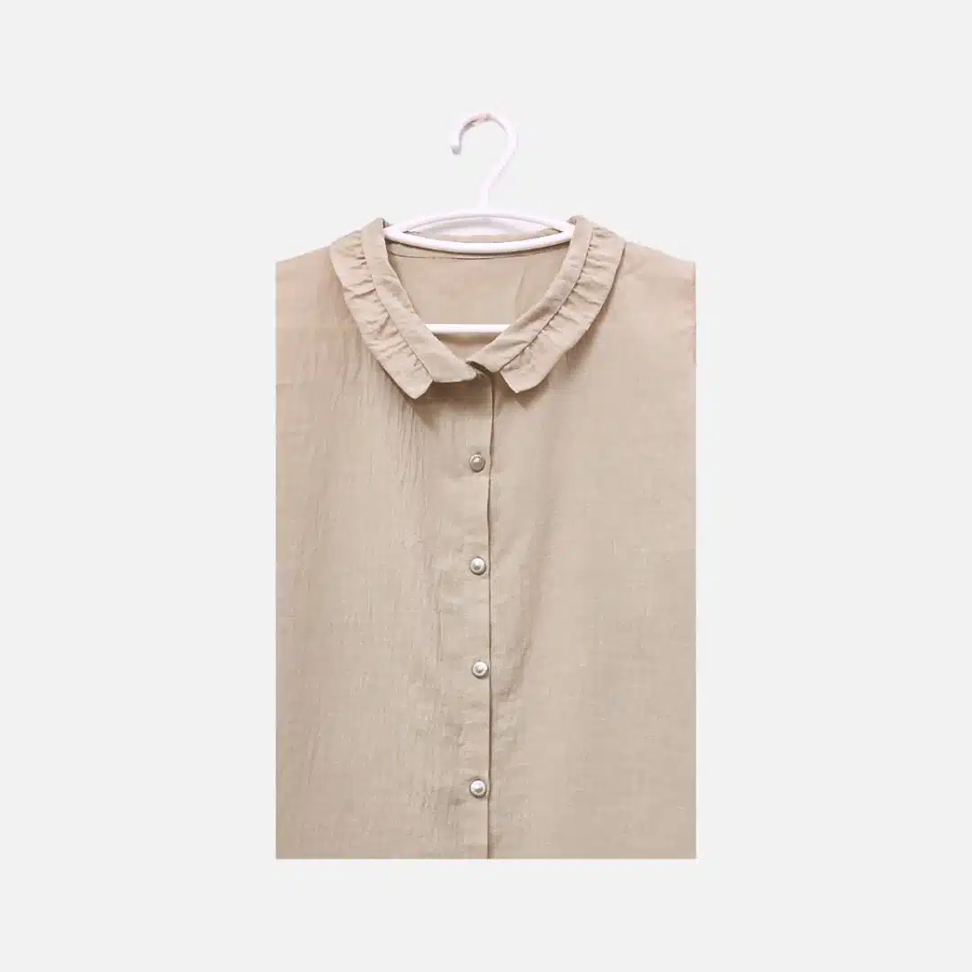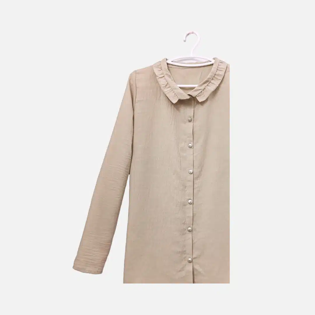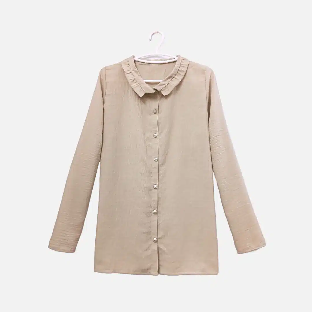 Classic beige button-up shirt: elegant long-sleeved design with a collared neckline