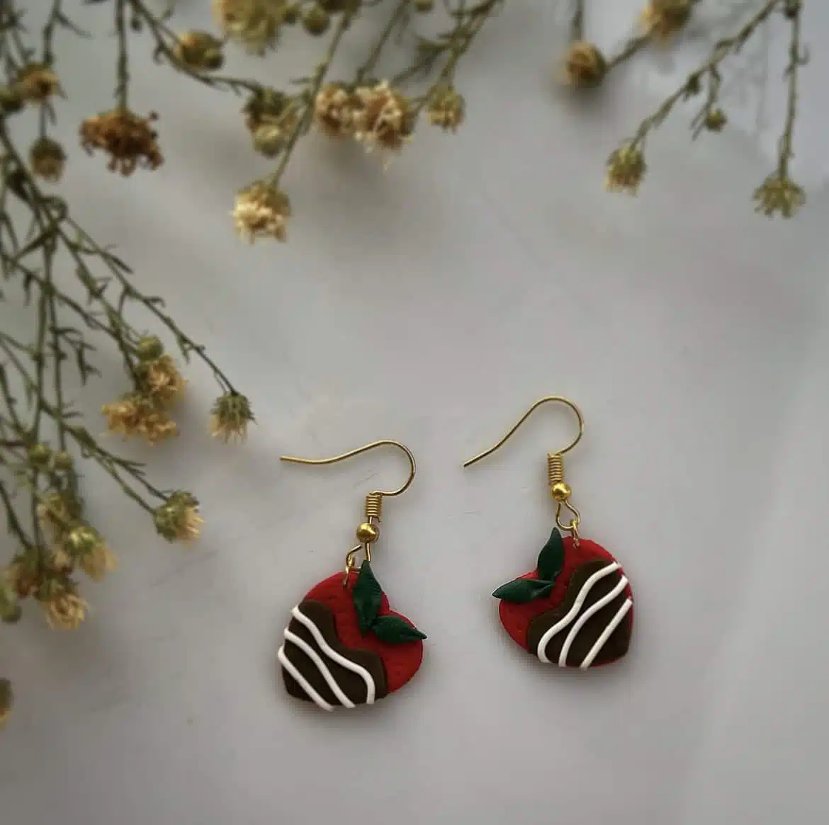 Handmade chocolate-covered strawberries polymer clay earrings.