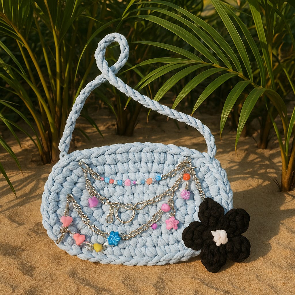 Crochet bag with chunky charm for summer .