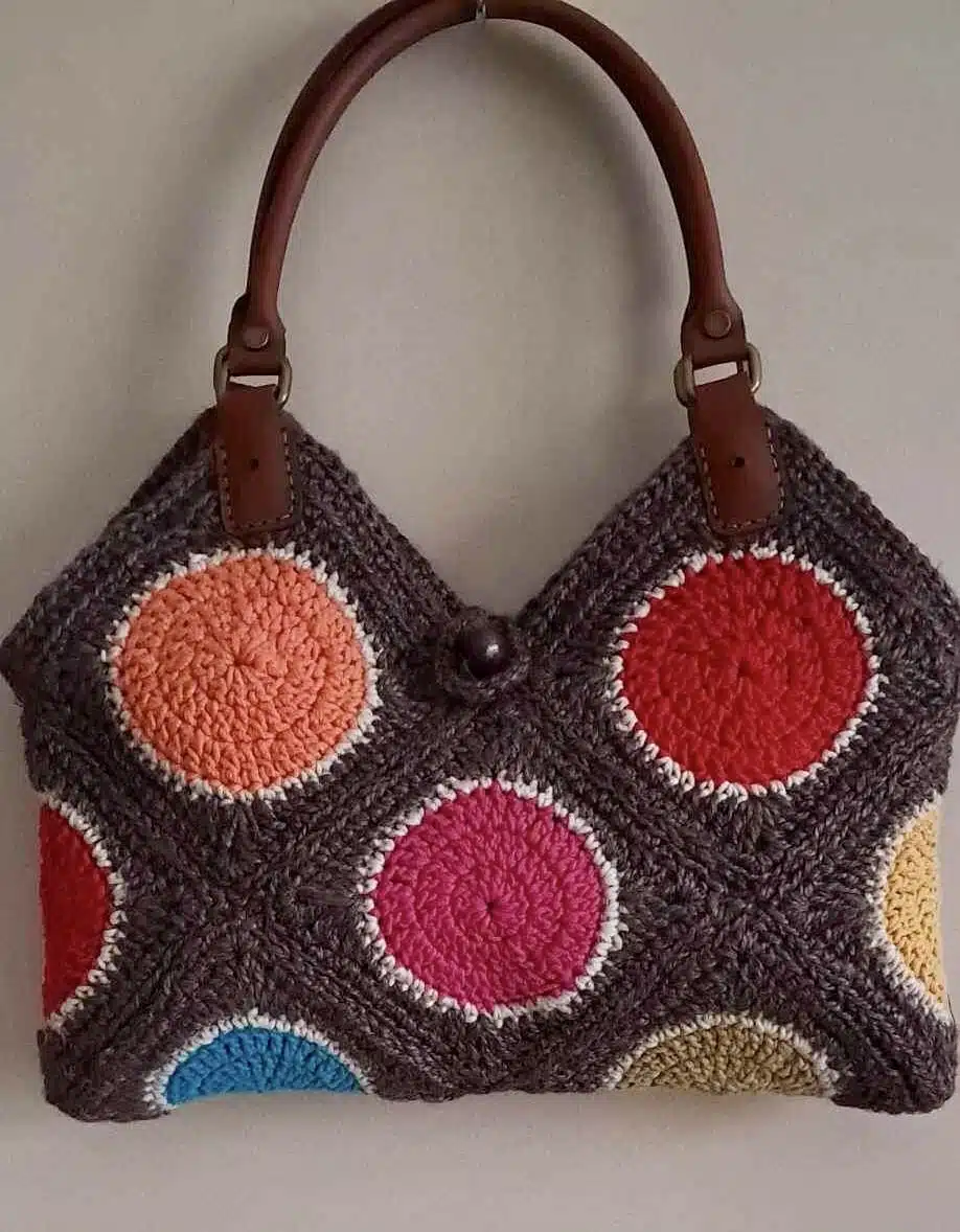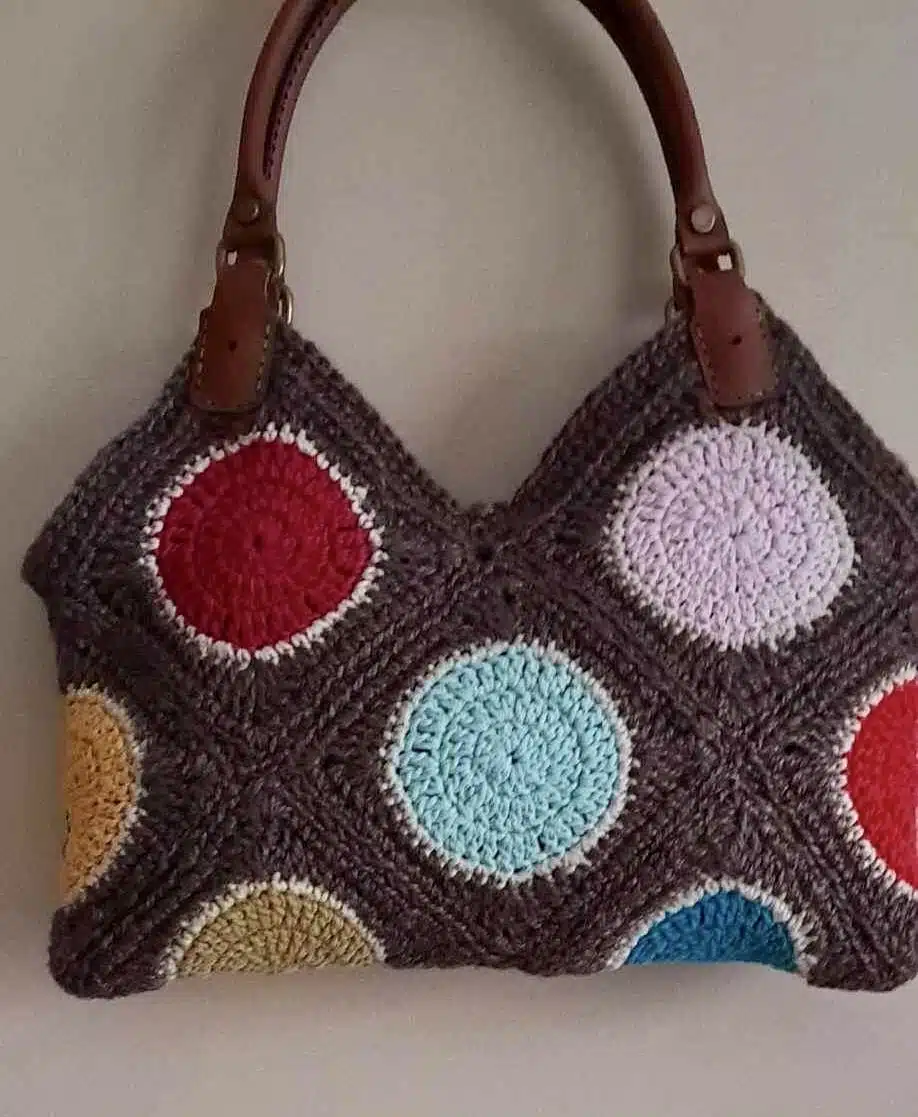 Crochet bag with colourful circles