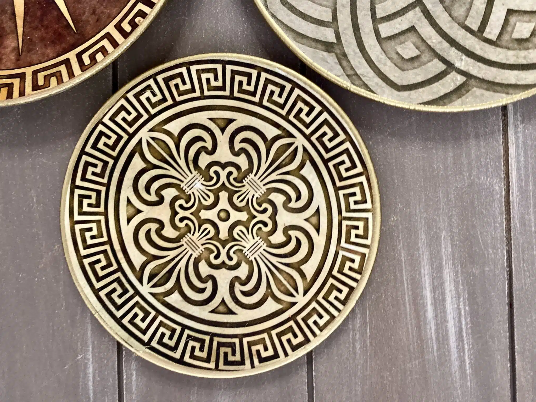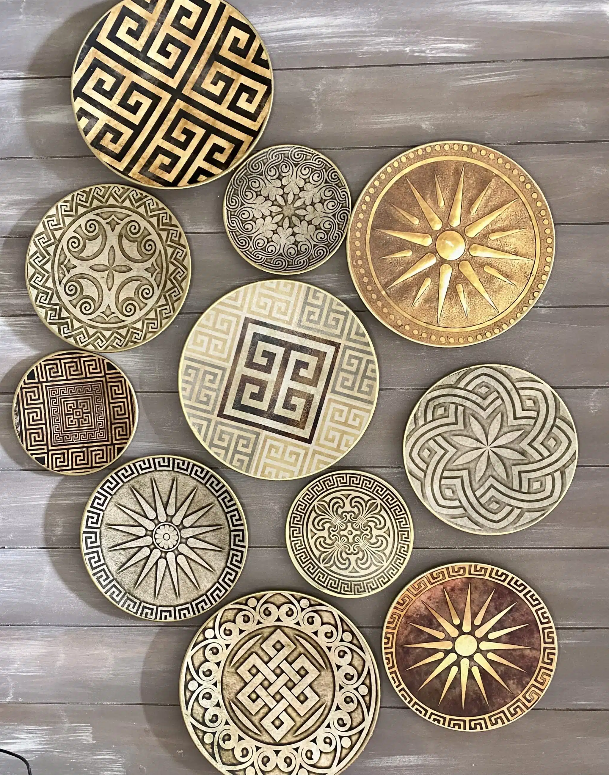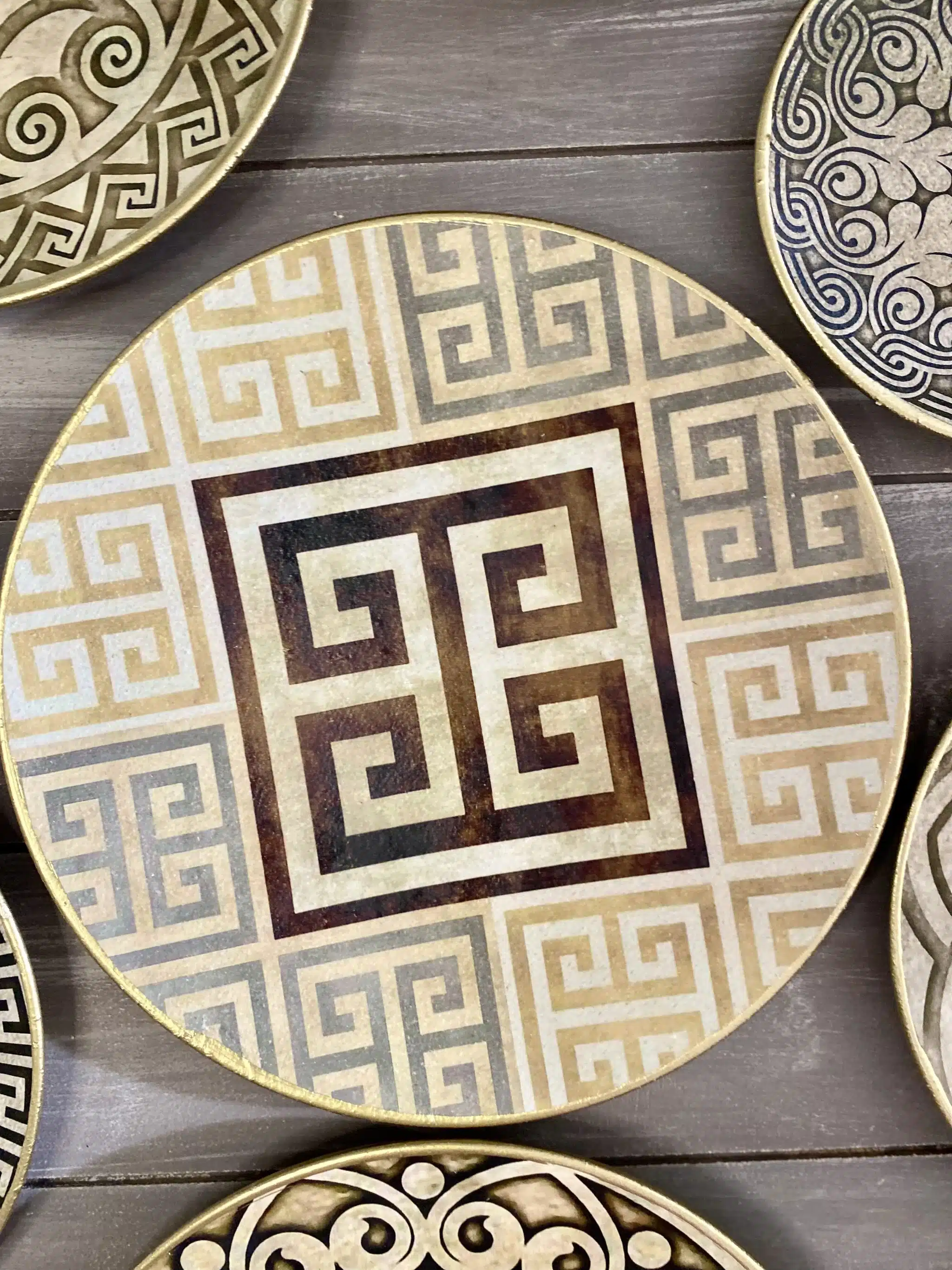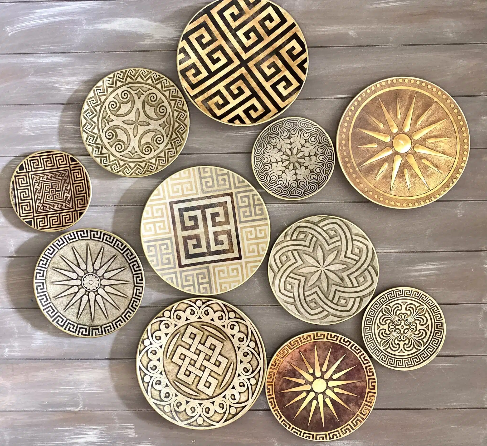 Decoupaged wall plates collection in classic greek design