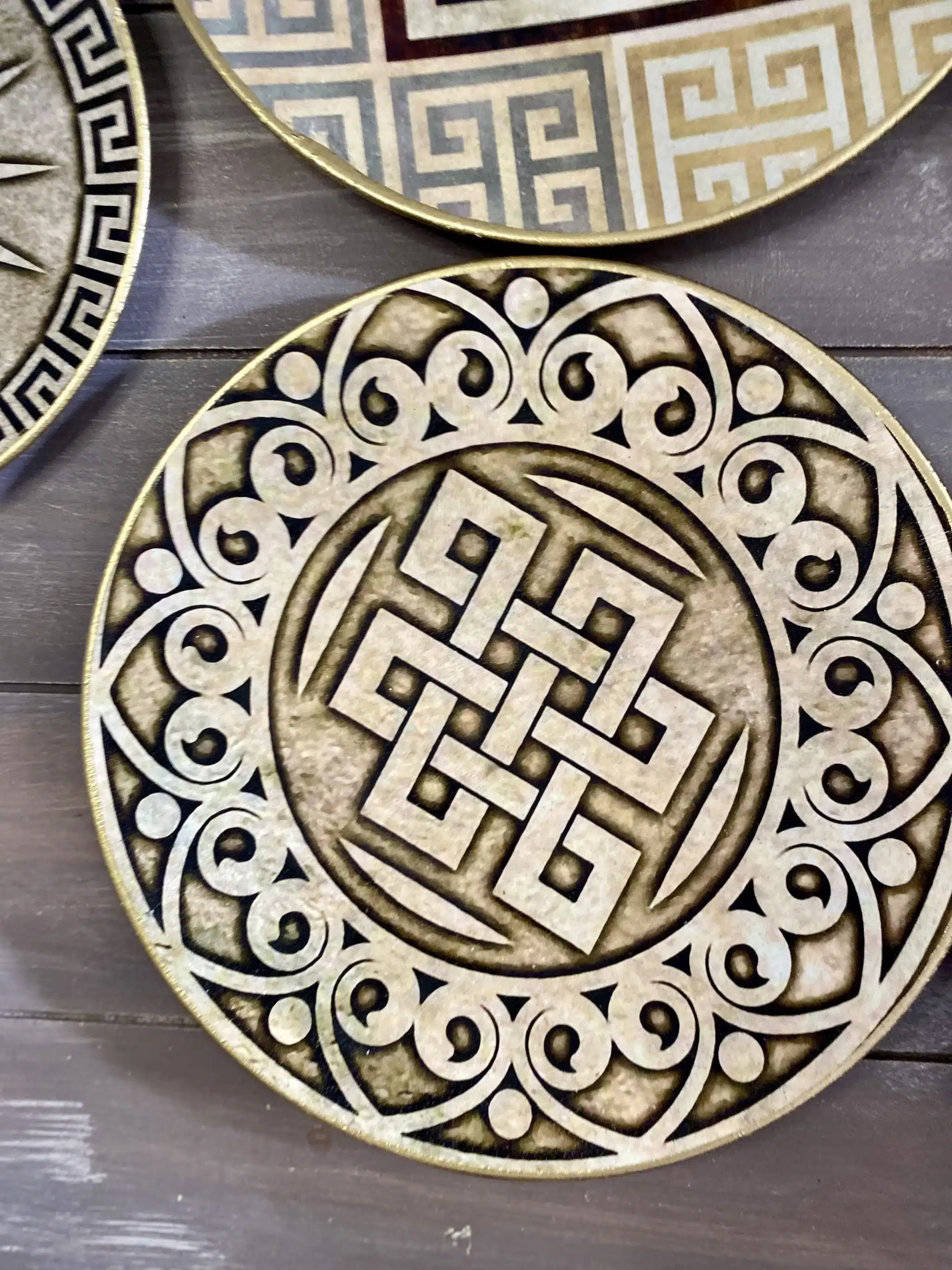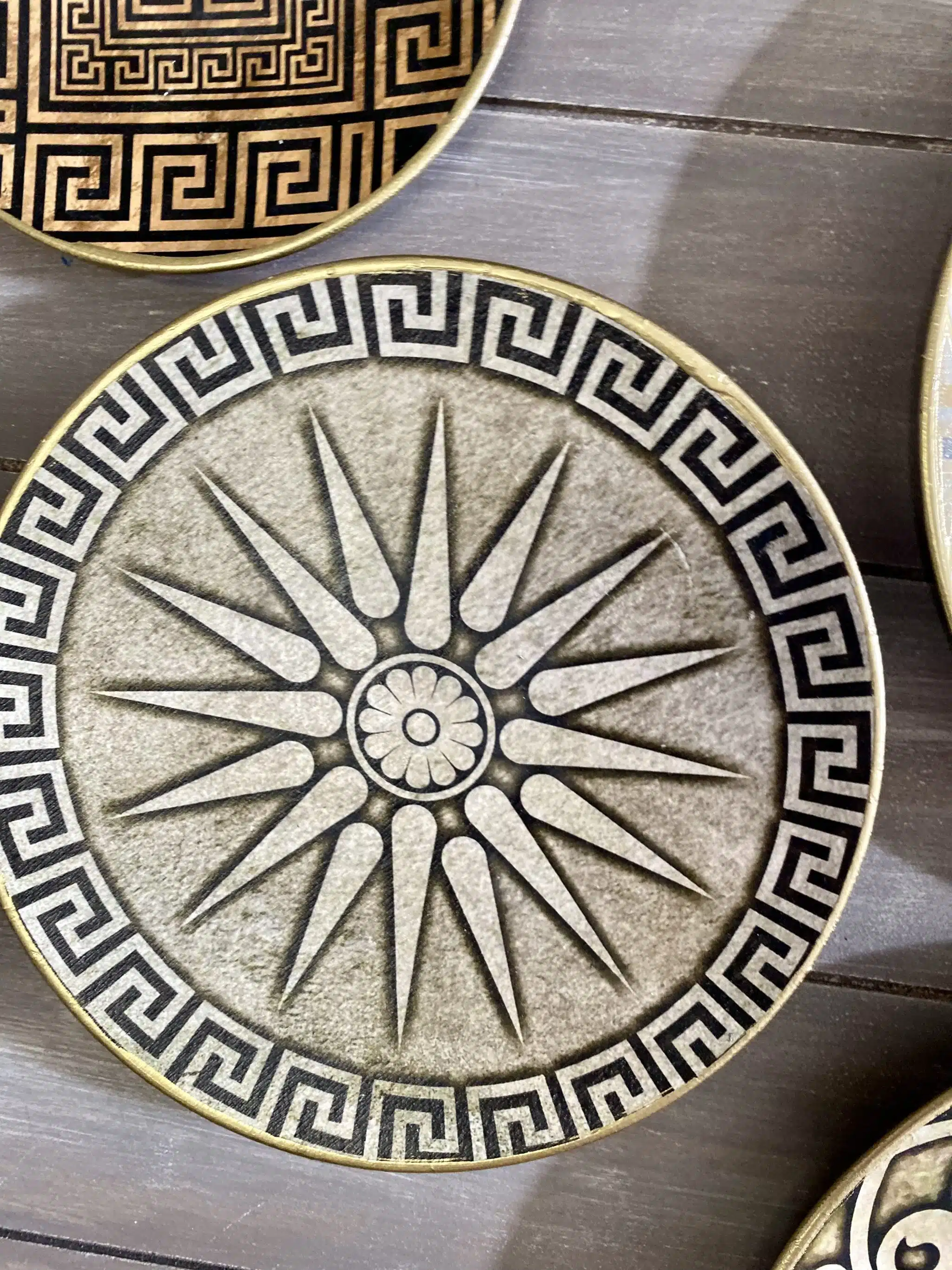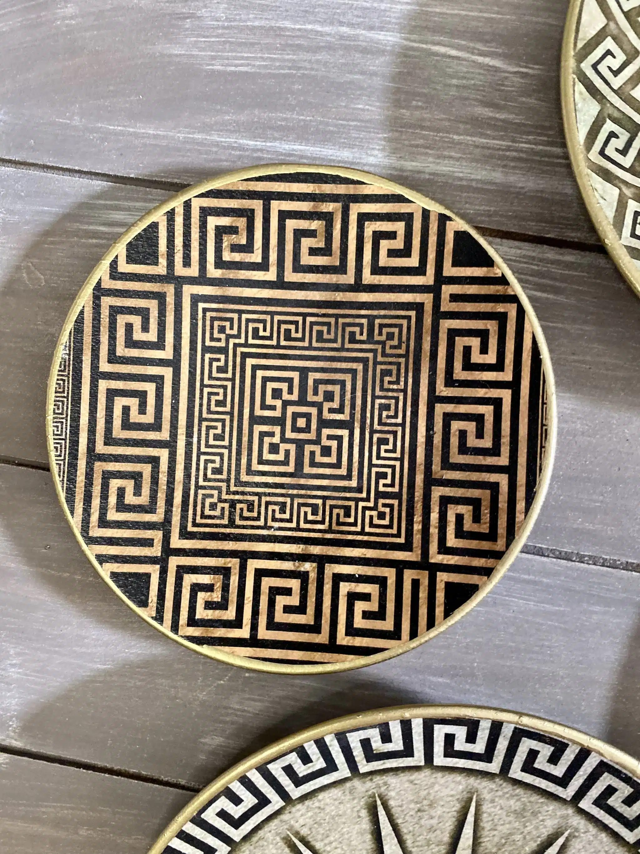 Decoupaged wall plates collection in classic greek design