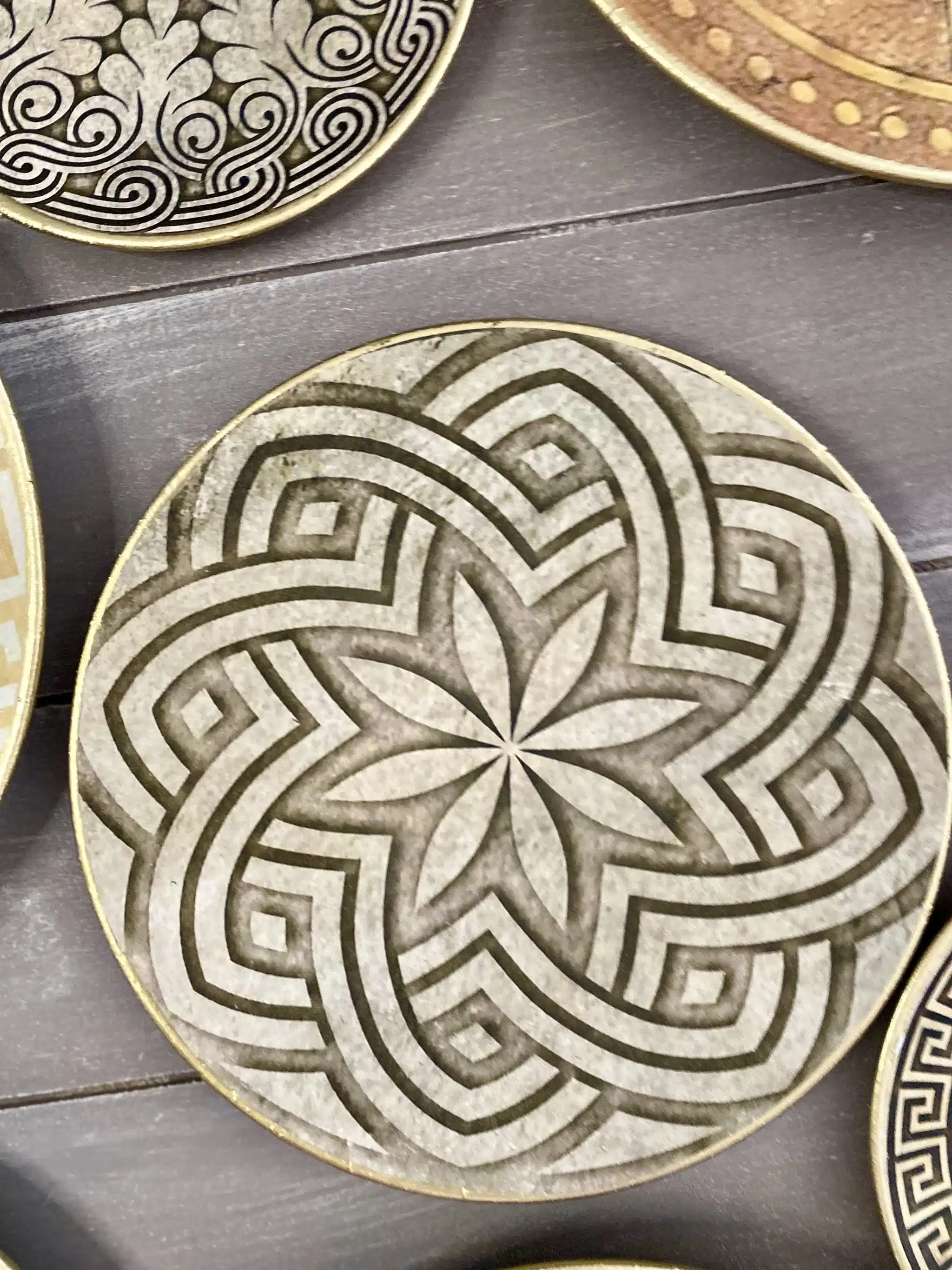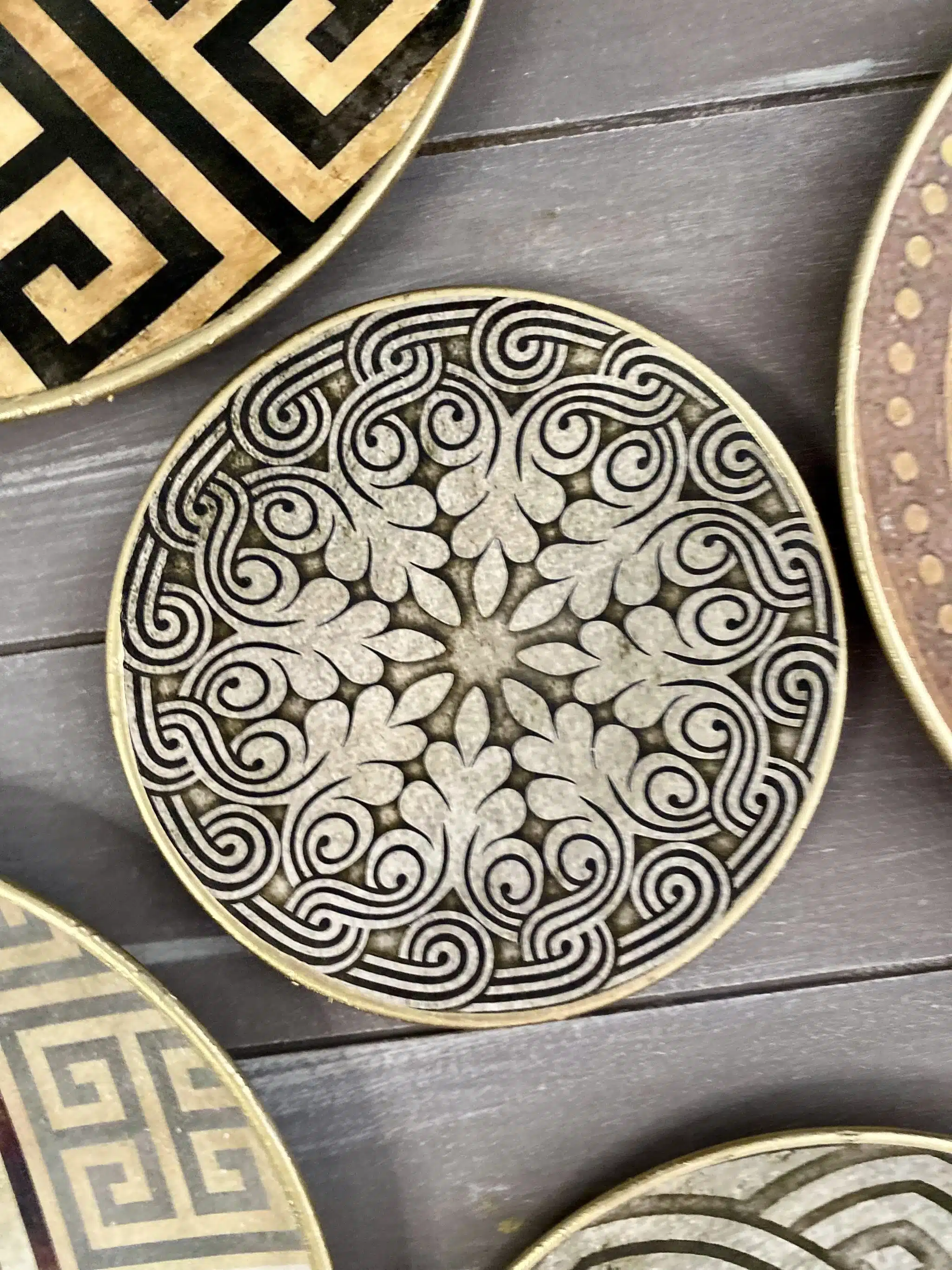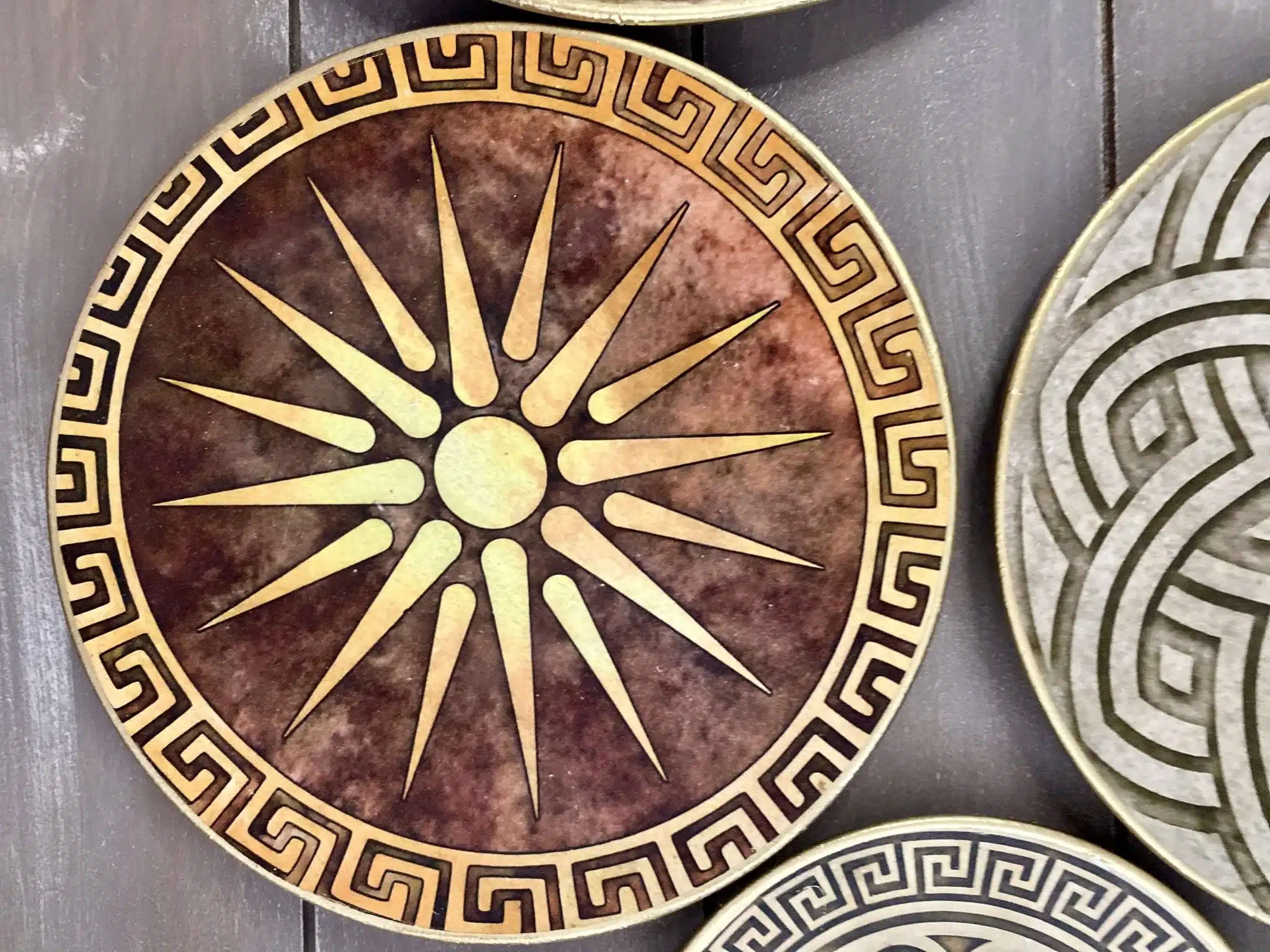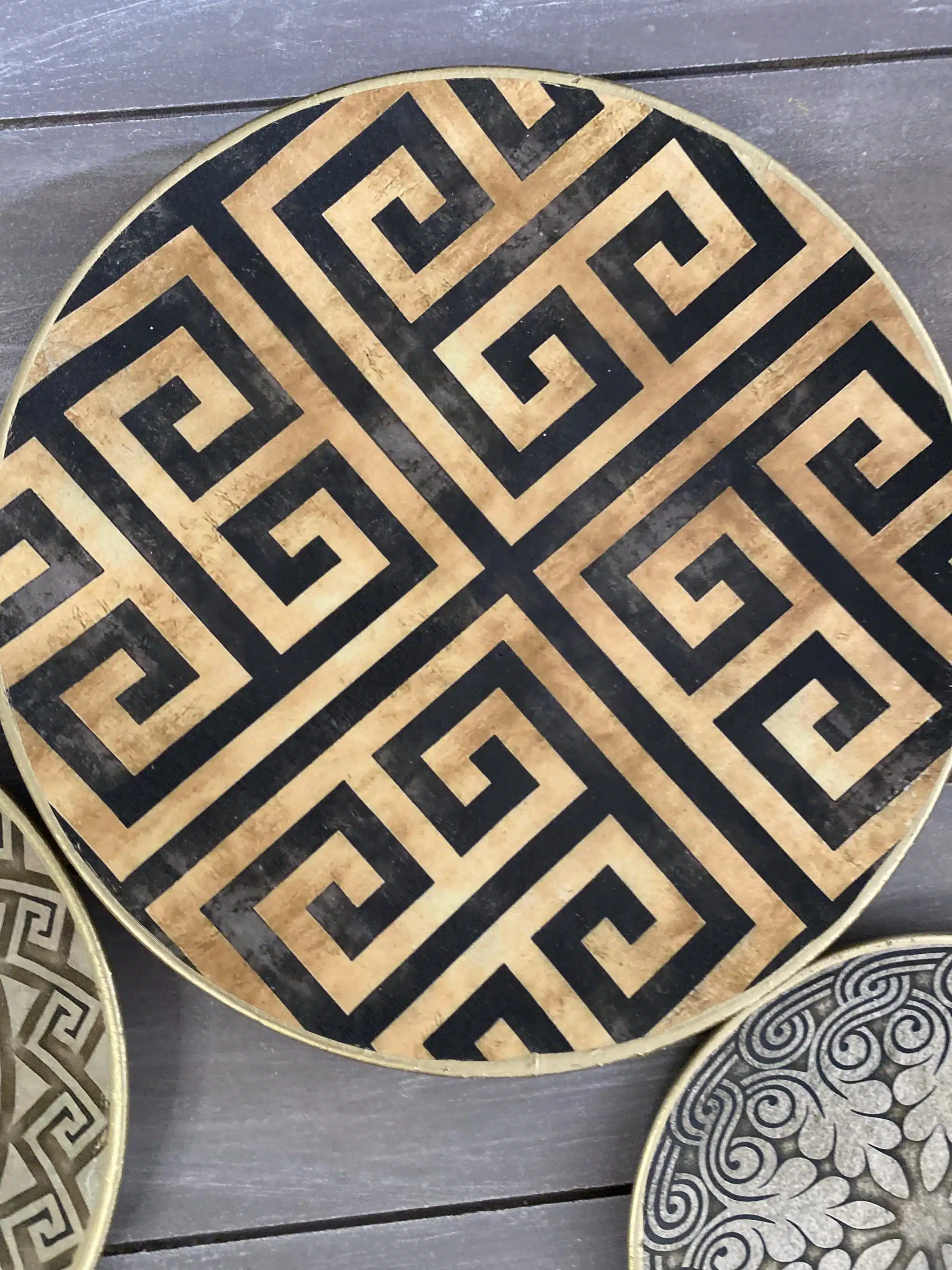 Decoupaged wall plates collection in classic greek design