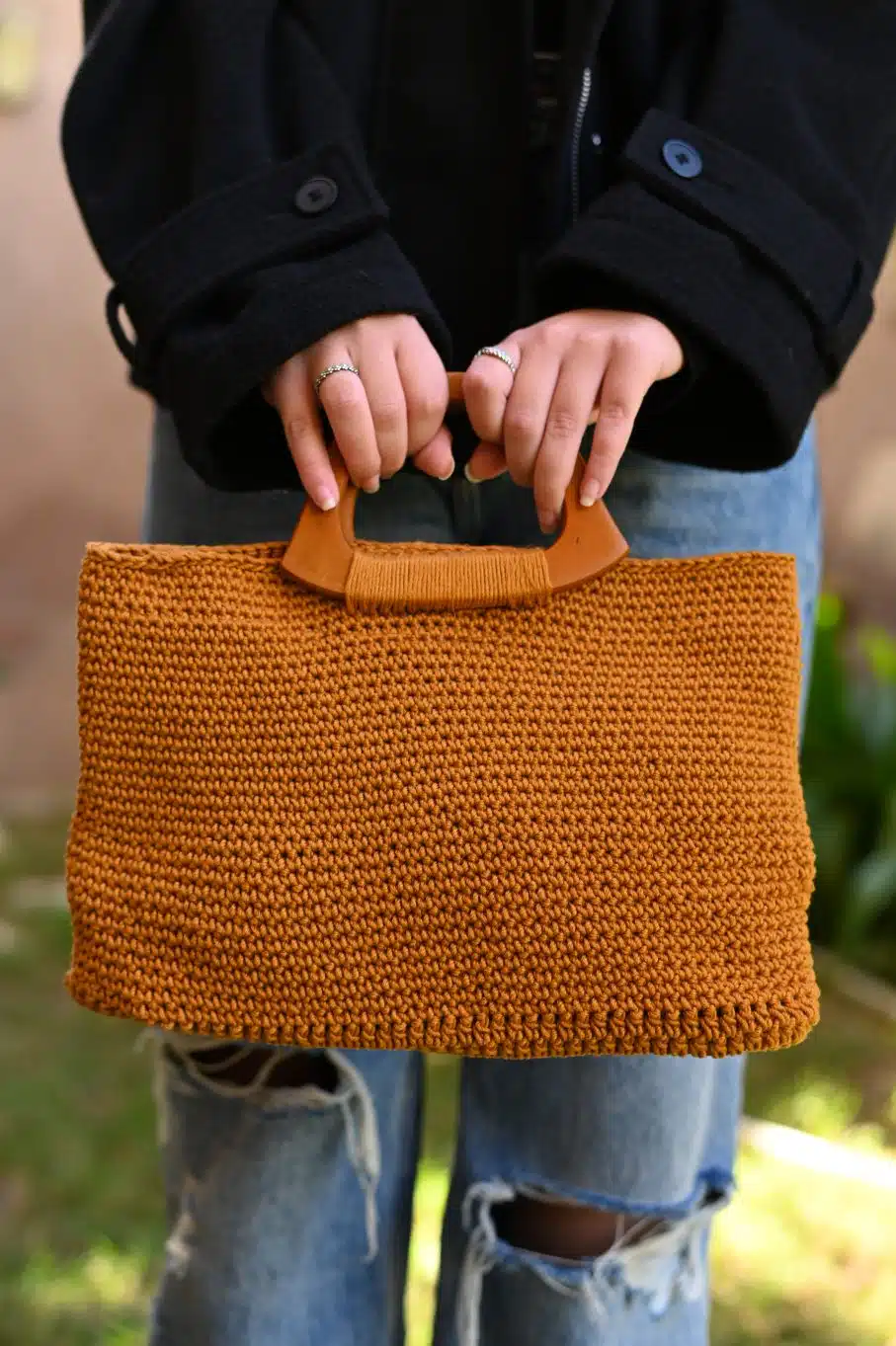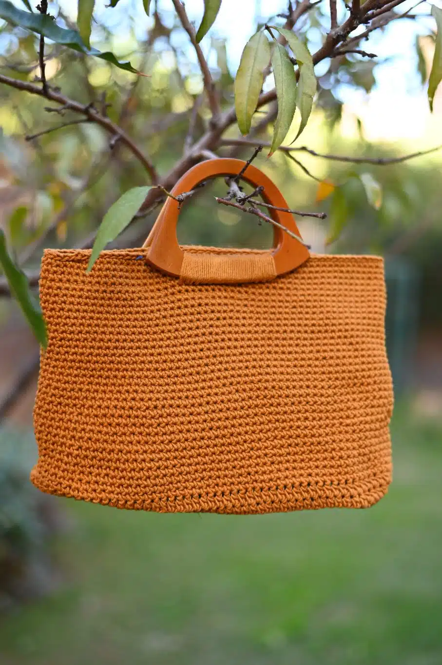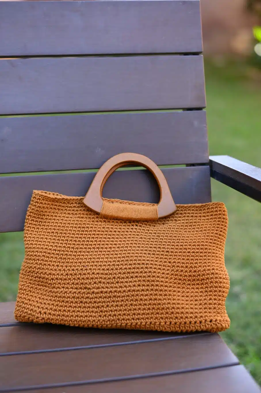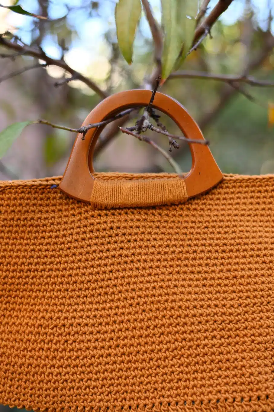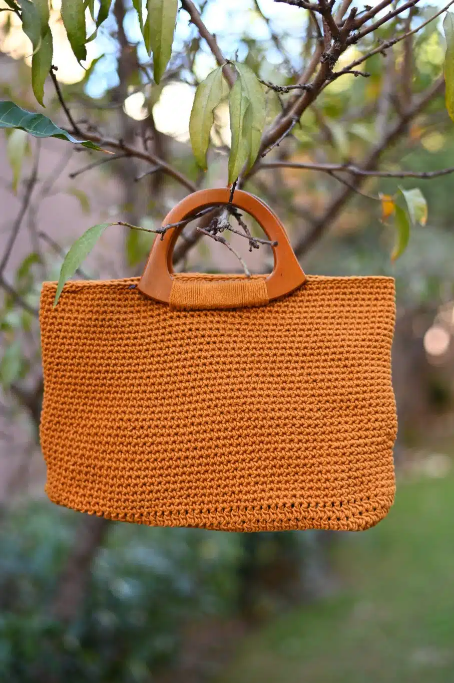 Crochet Handbag with wooden handle