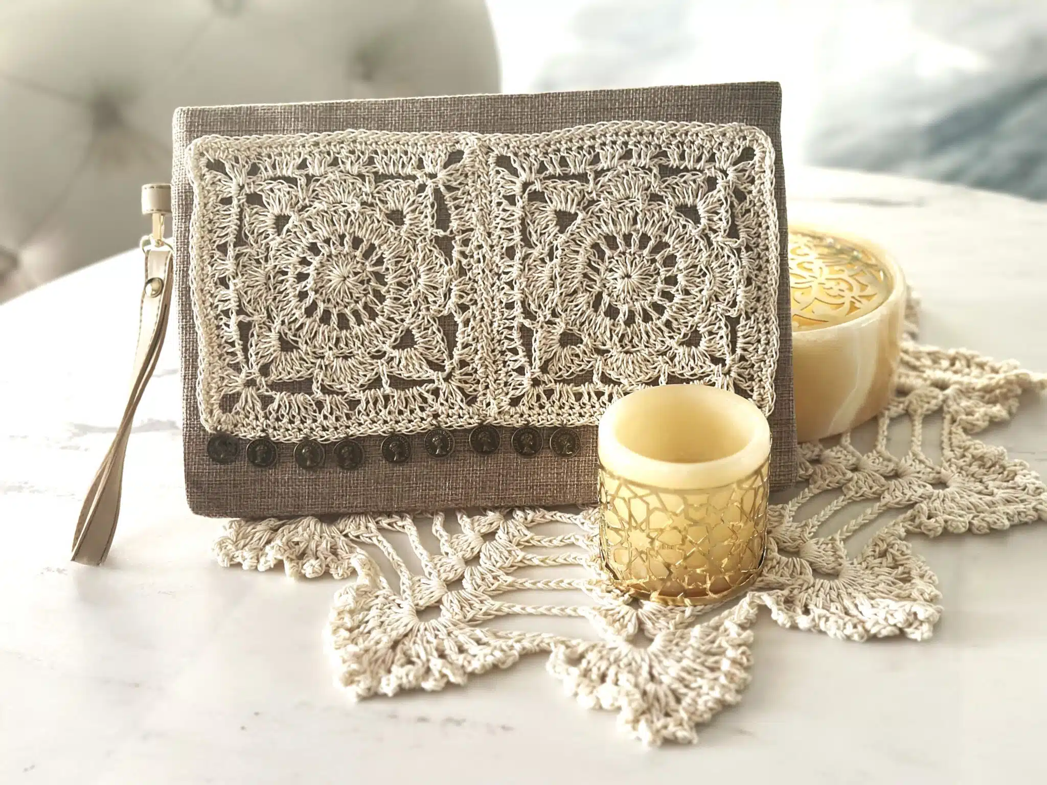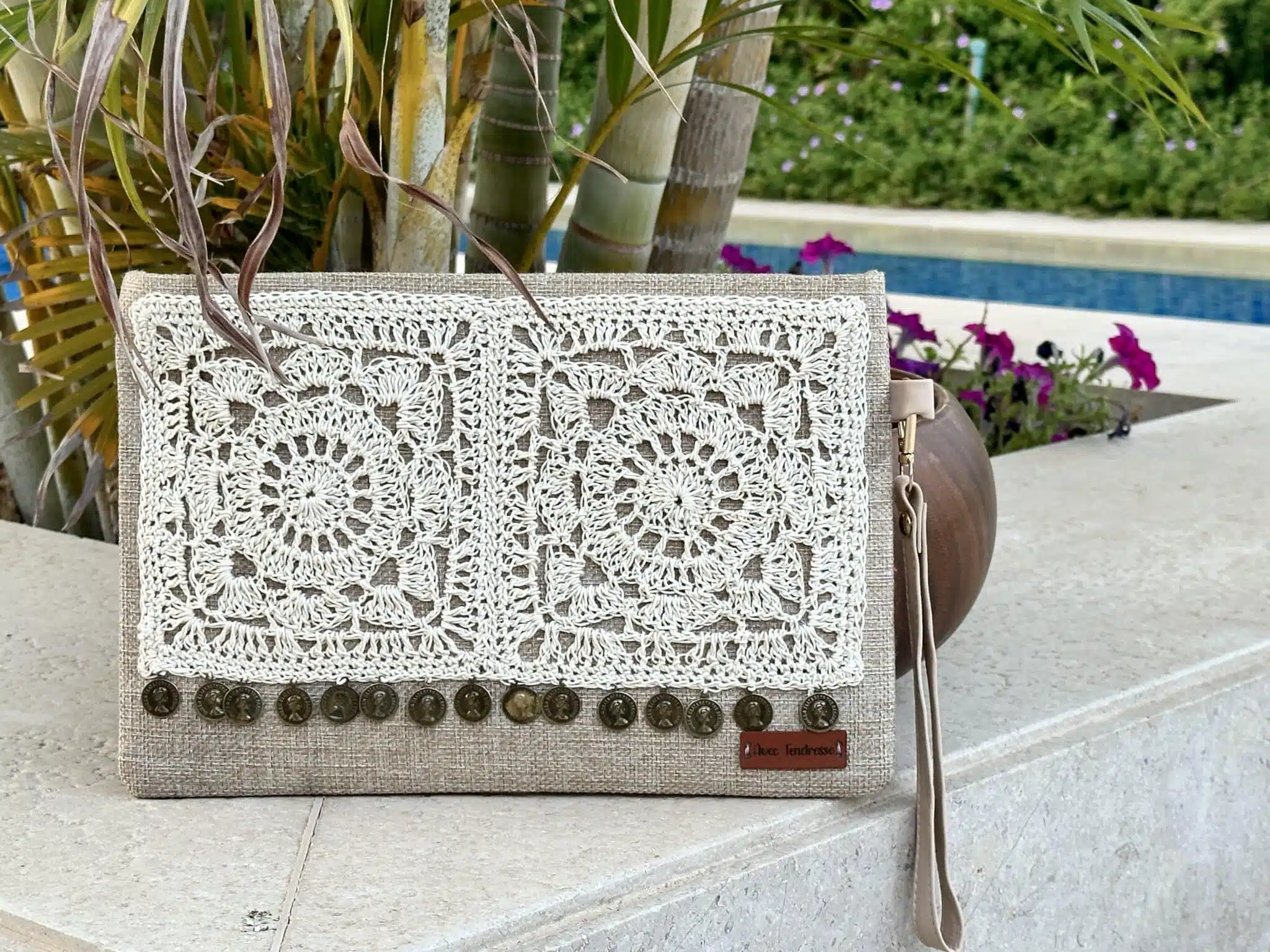 Clutch/cross bag with crochet applique