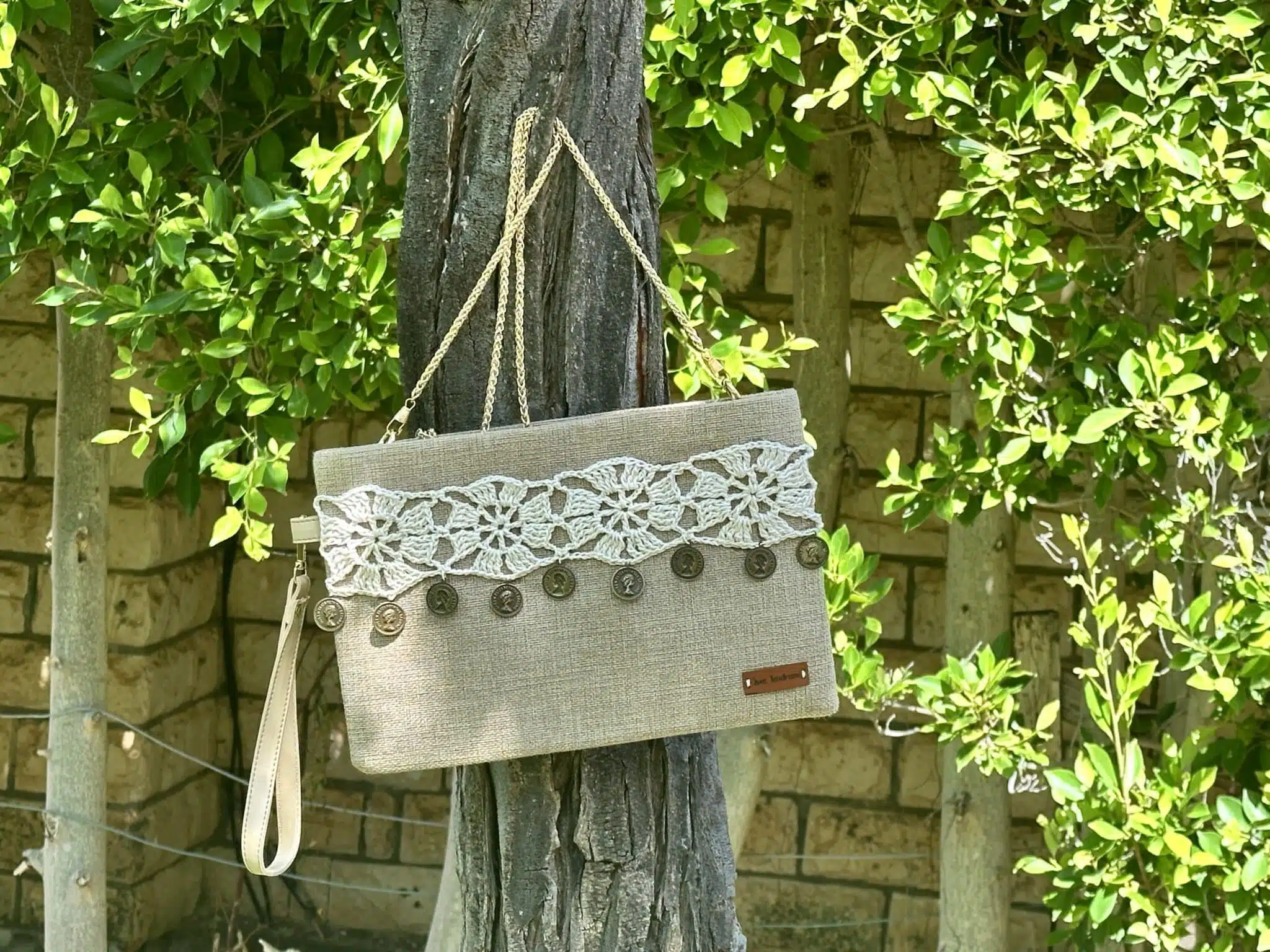 Be the first to review “Clutch/cross bag with crochet applique”