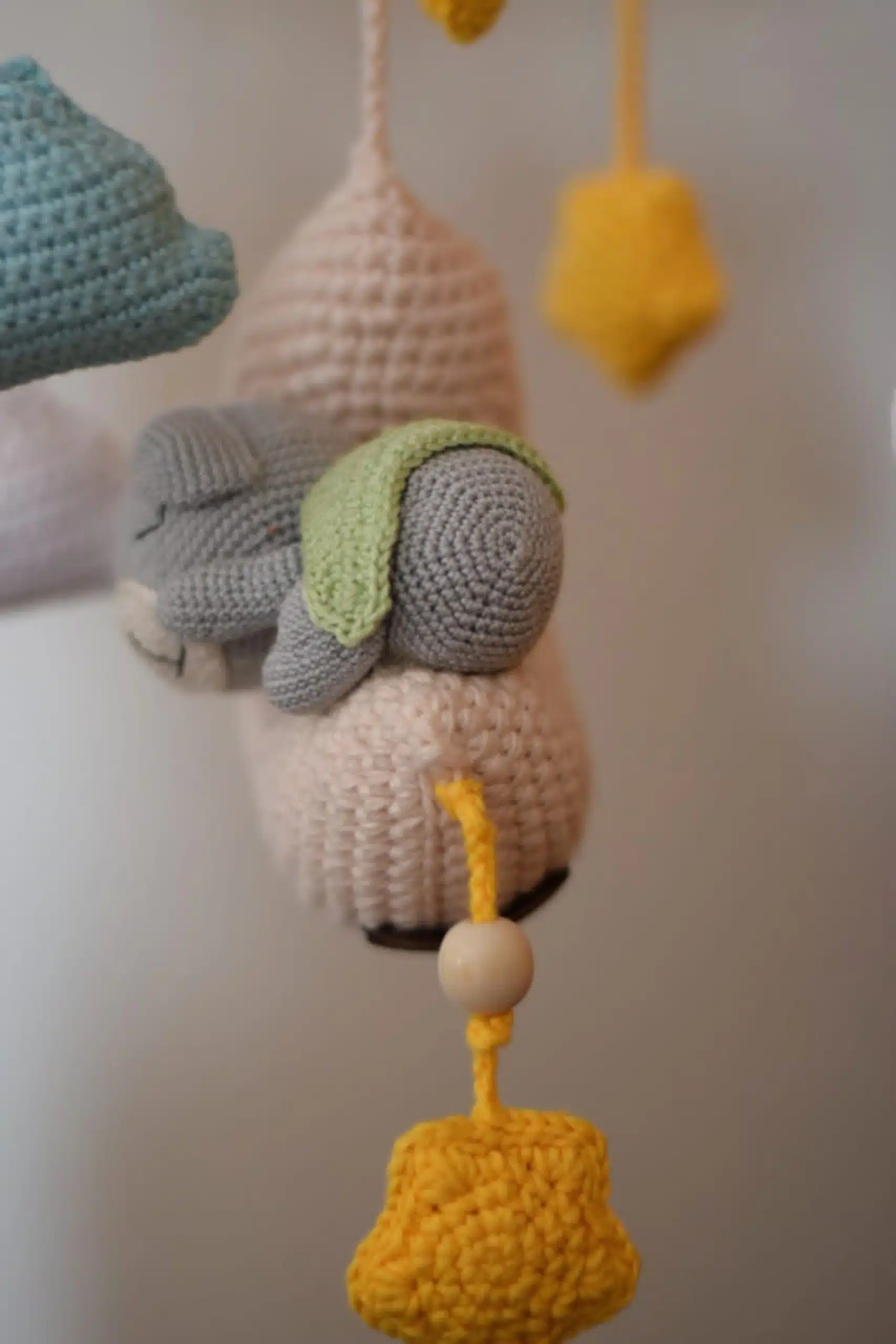 Let Coco the Bear float above your baby’s dreams with this cozy, handmade crib mobile designed for gentle movement and sensory calm.