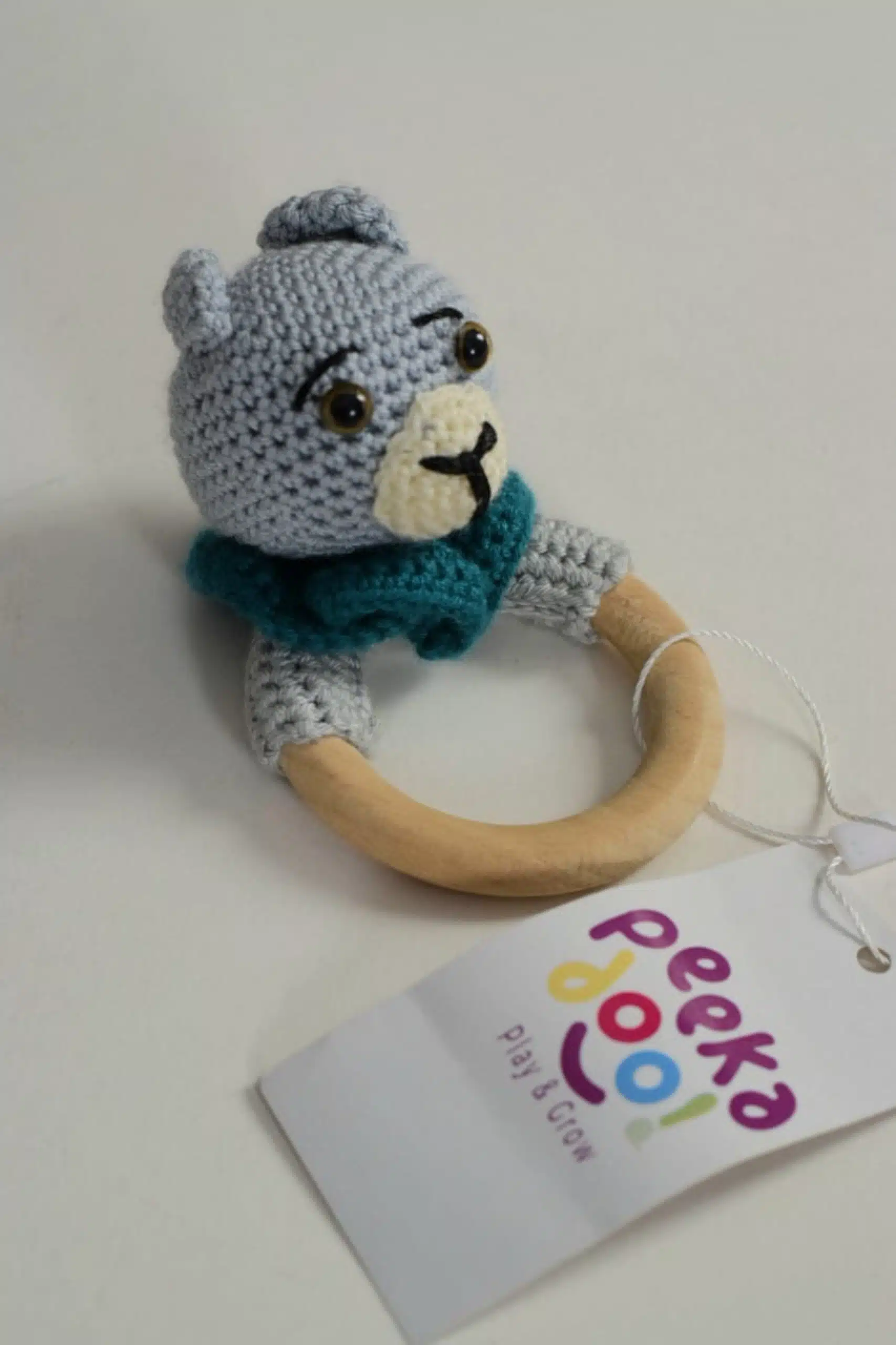 Coco the Bear is a sweet, soft rattle that soothes, entertains, and stimulates your baby’s senses—all handmade from hypoallergenic cotton yarn.