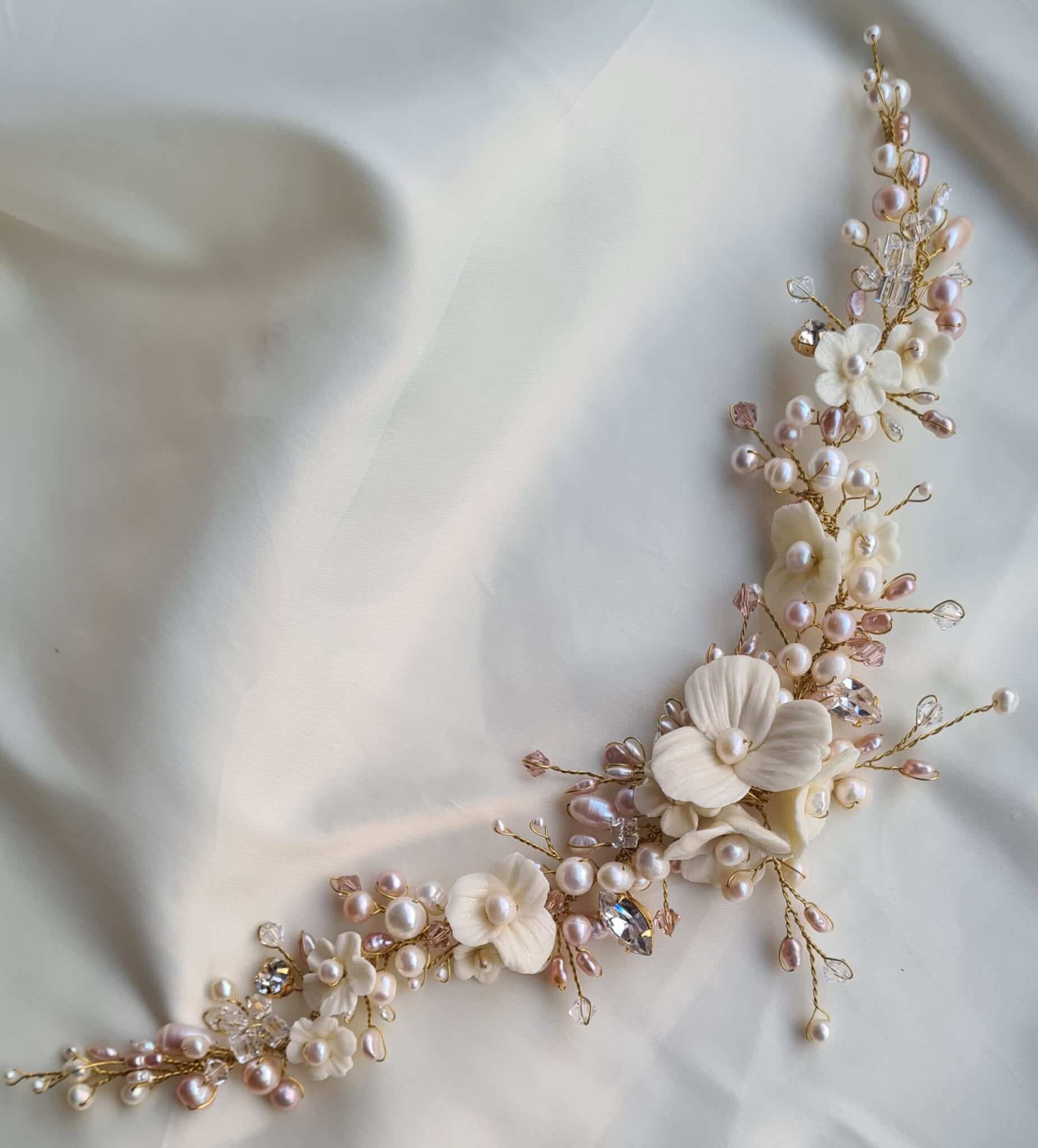 Handmade flowers, natural pearls swarovski/grade A crystals