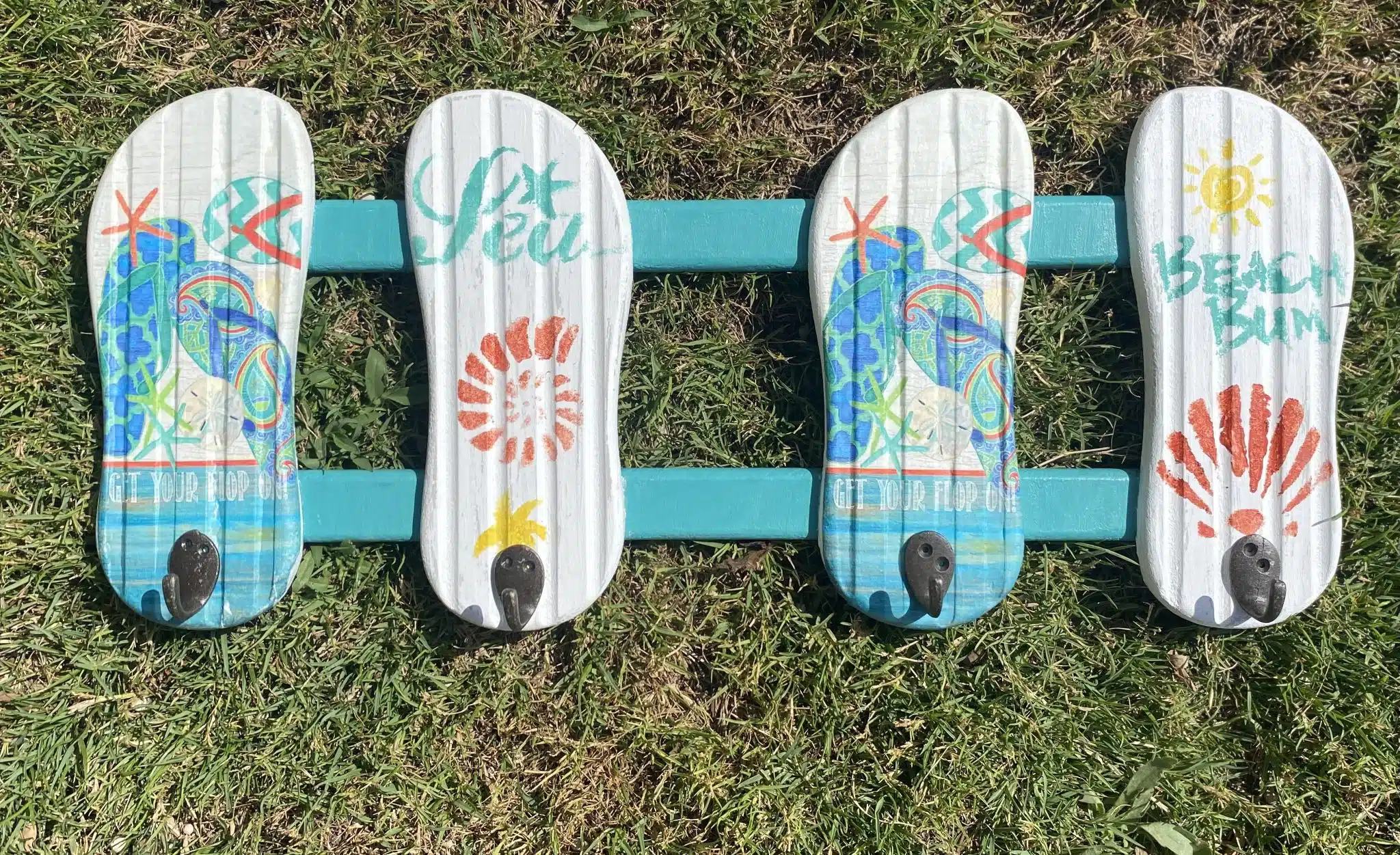 Wooden decoupaged hanger in flip flop design