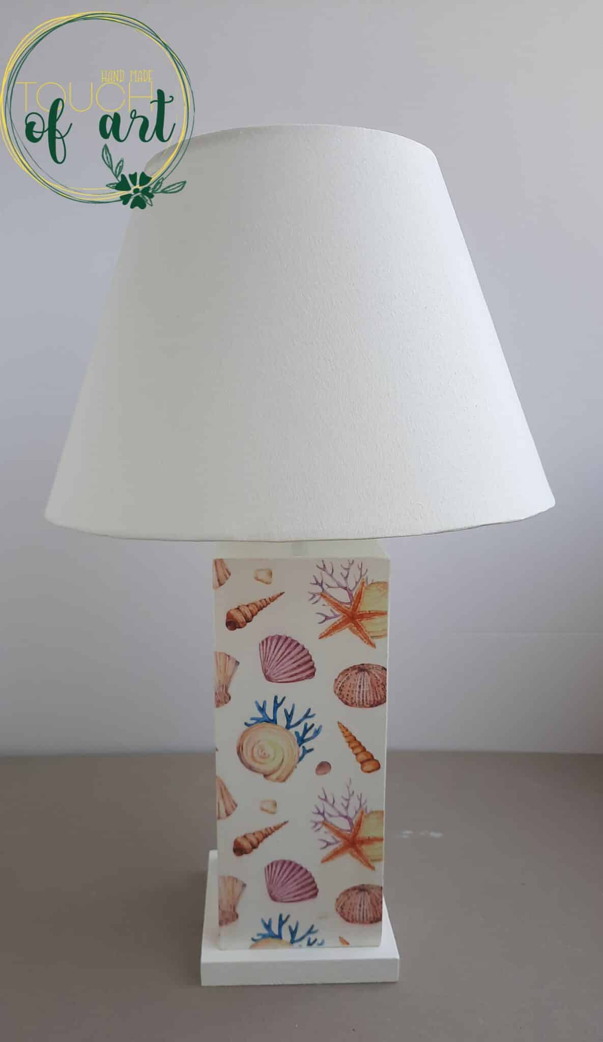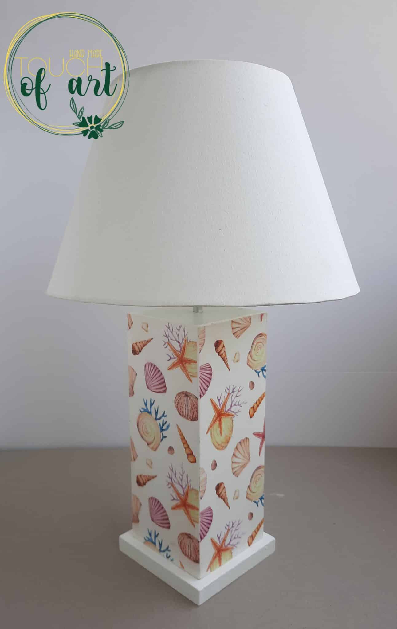 Side table lamp decoupaged with colorful undersea pattern ,