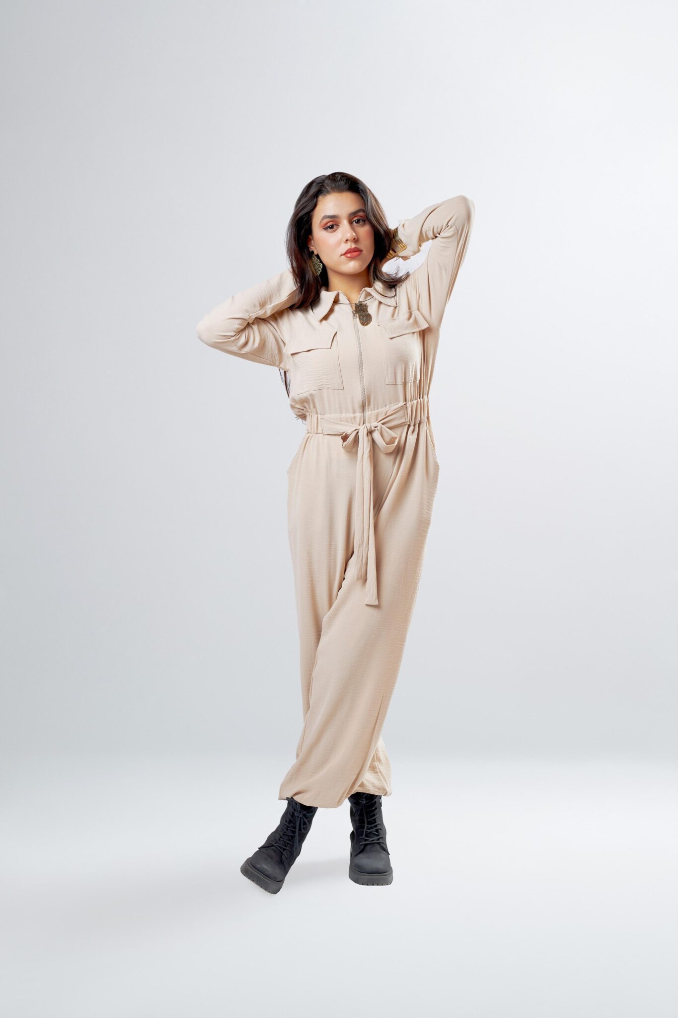 Meet the HAZEL Comfy Jumpsuit – the perfect balance between chic and comfort. Designed with a flattering waist tie and front zip detail, it’s your go-to outfit for effortless elegance. Available in three versatile colors: beige, black, and olive, and in multiple sizes to suit every body type. Choose between long sleeves or half sleeves based on your preference. Whether you’re dressing up or down, the HAZEL jumpsuit adapts to your style—easy, breathable, and always stylish.