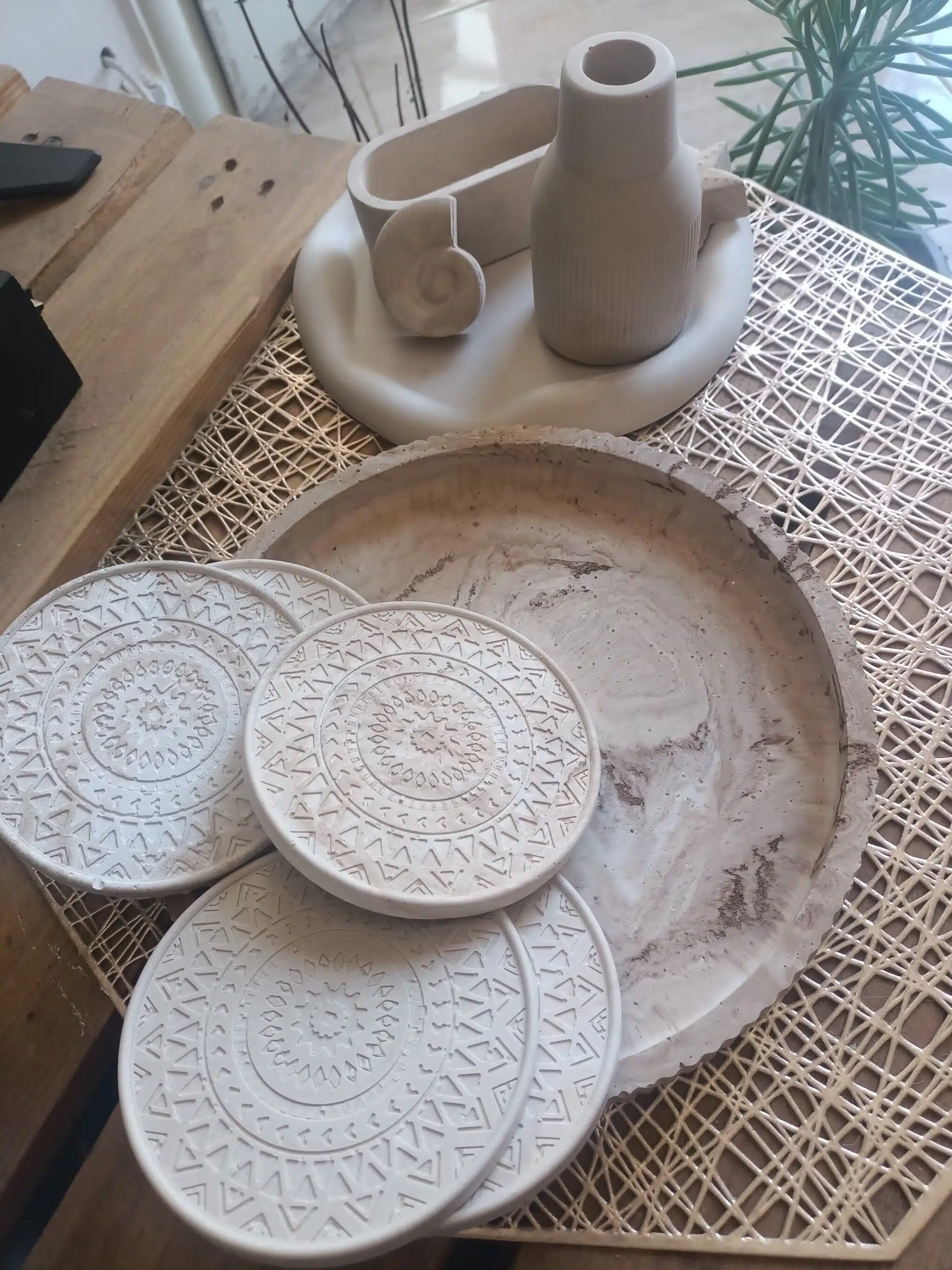 Concrete trays coasters & vase set