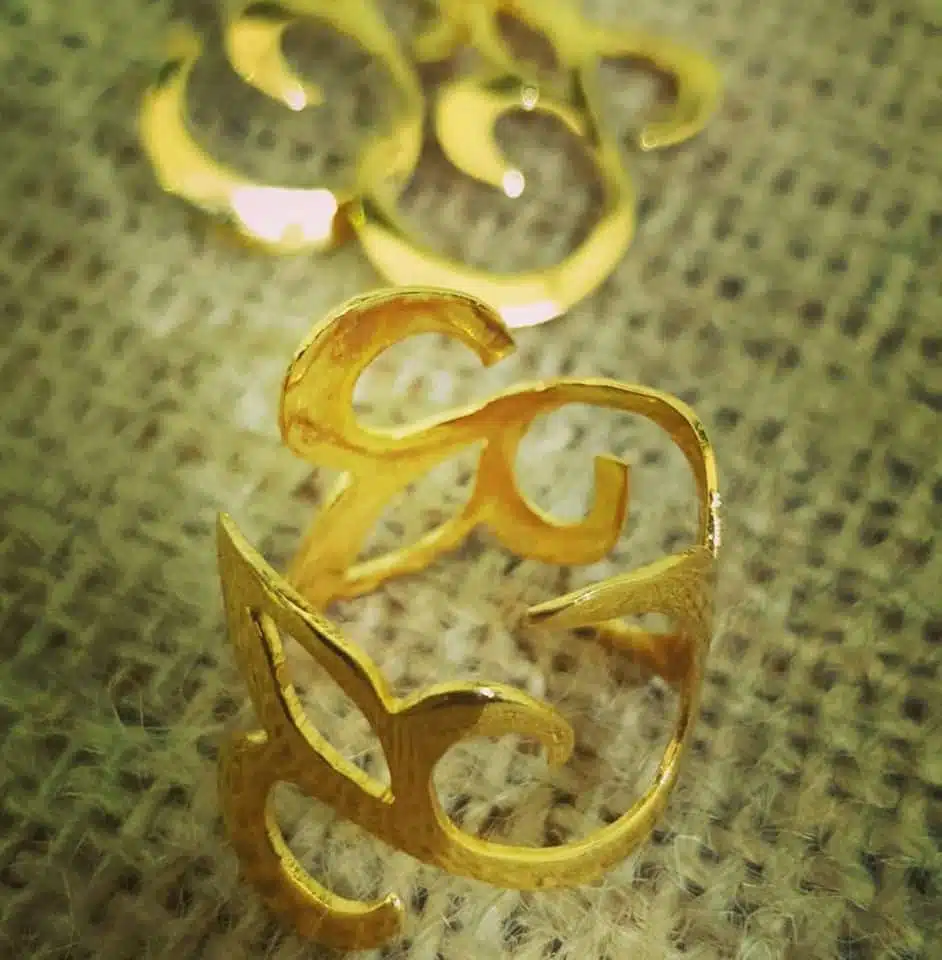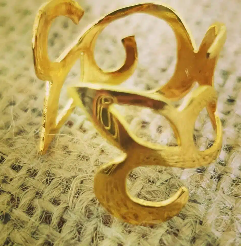 Gold plated/copper adjustable ring. It has a matching earring done by order.