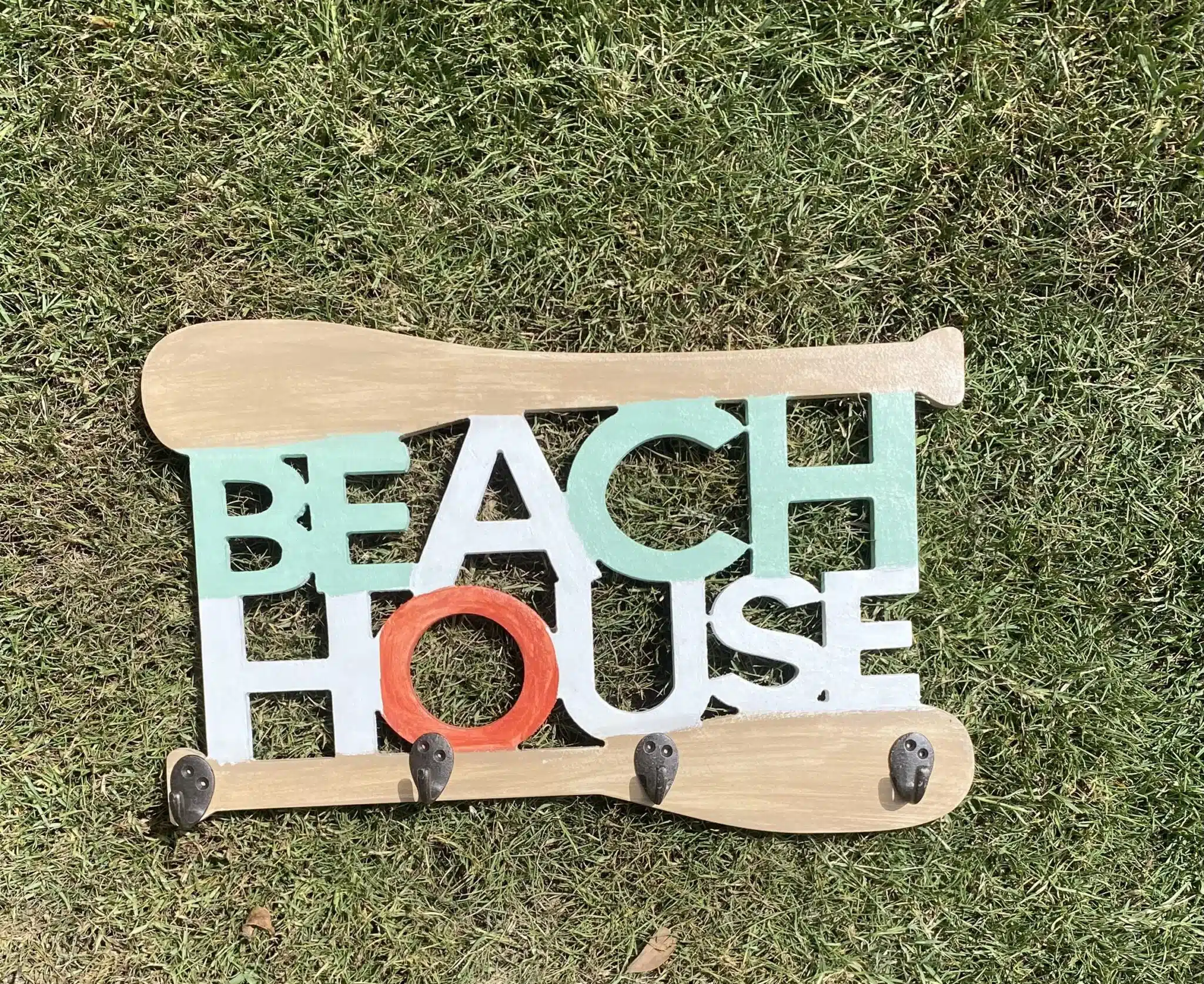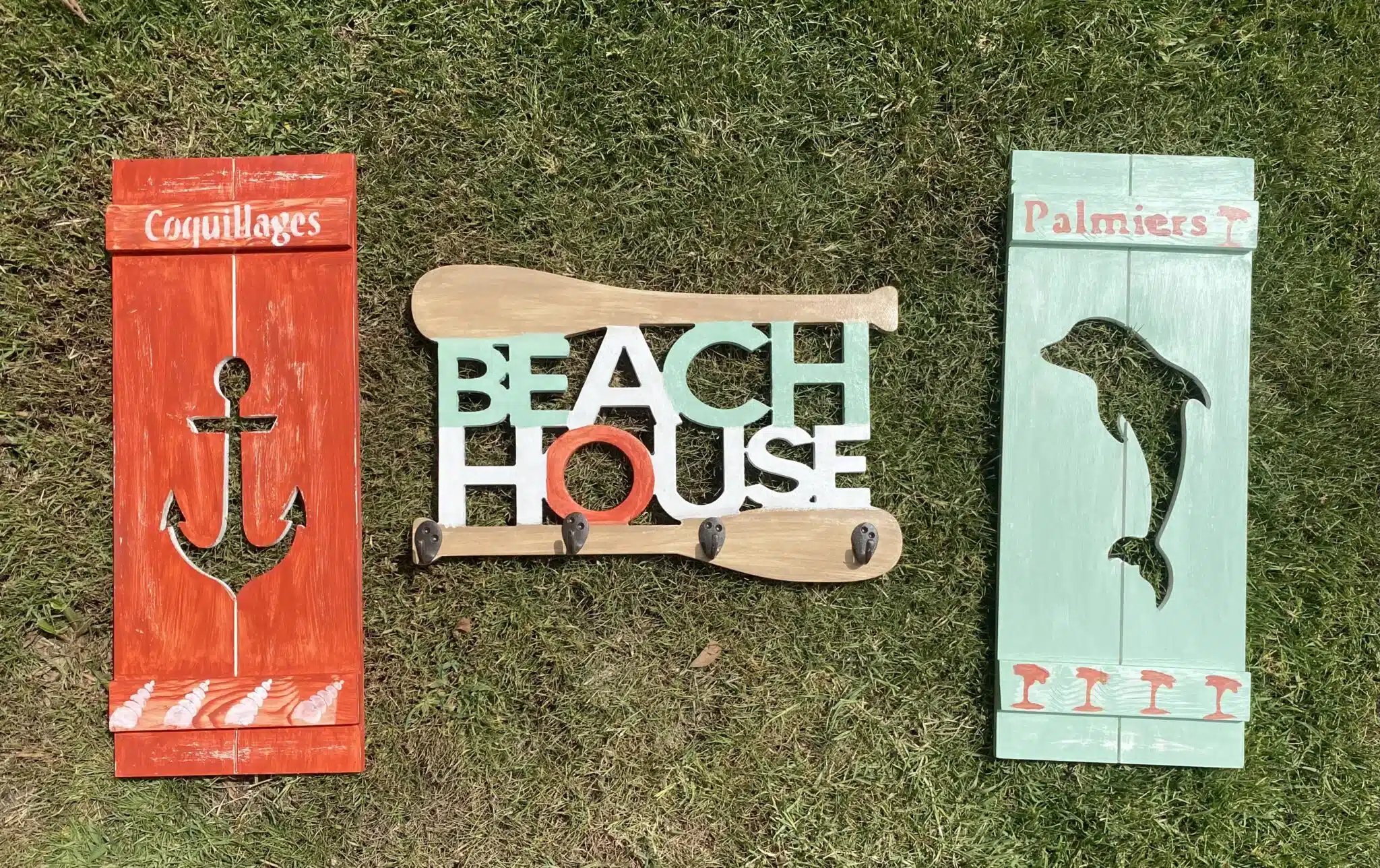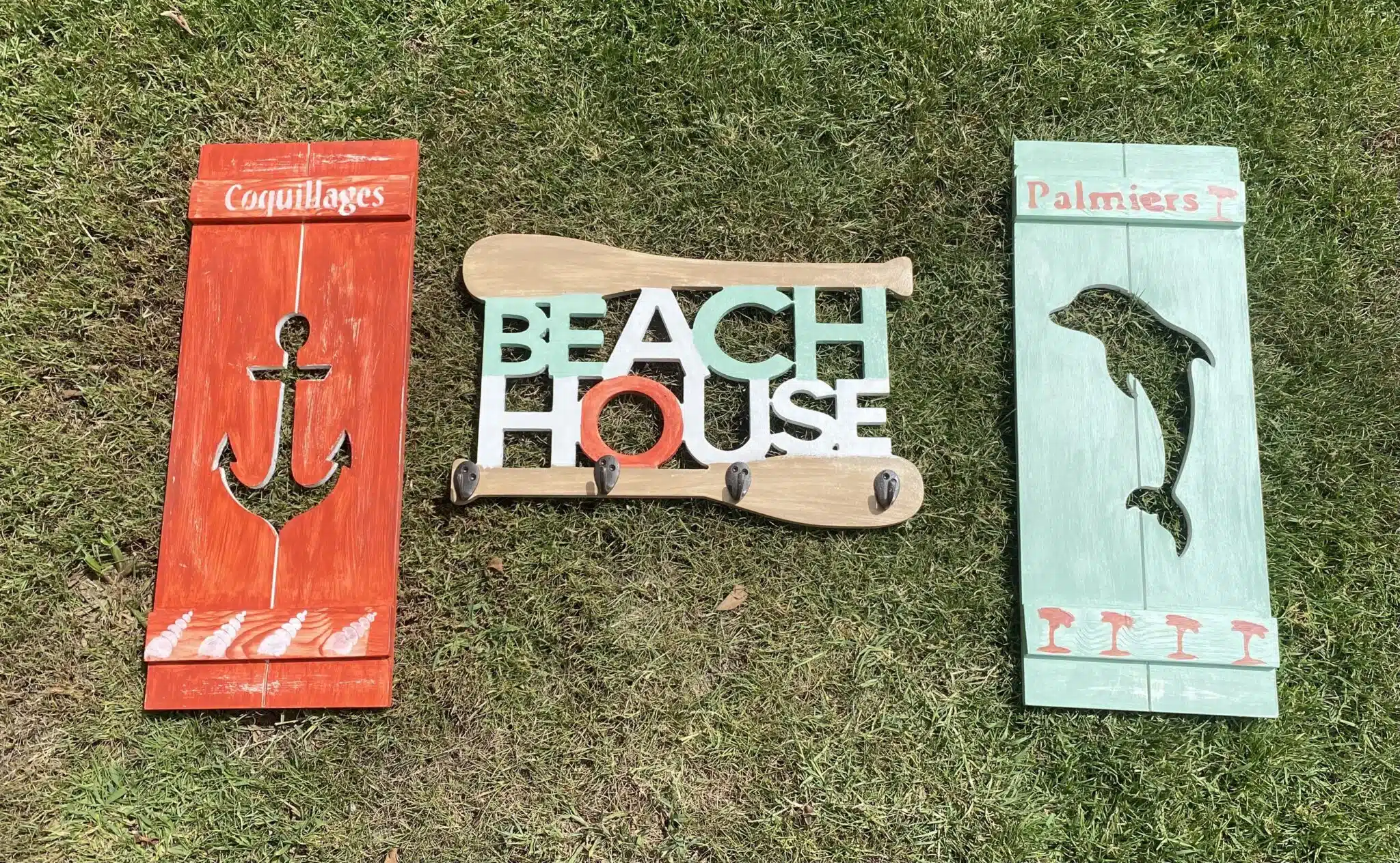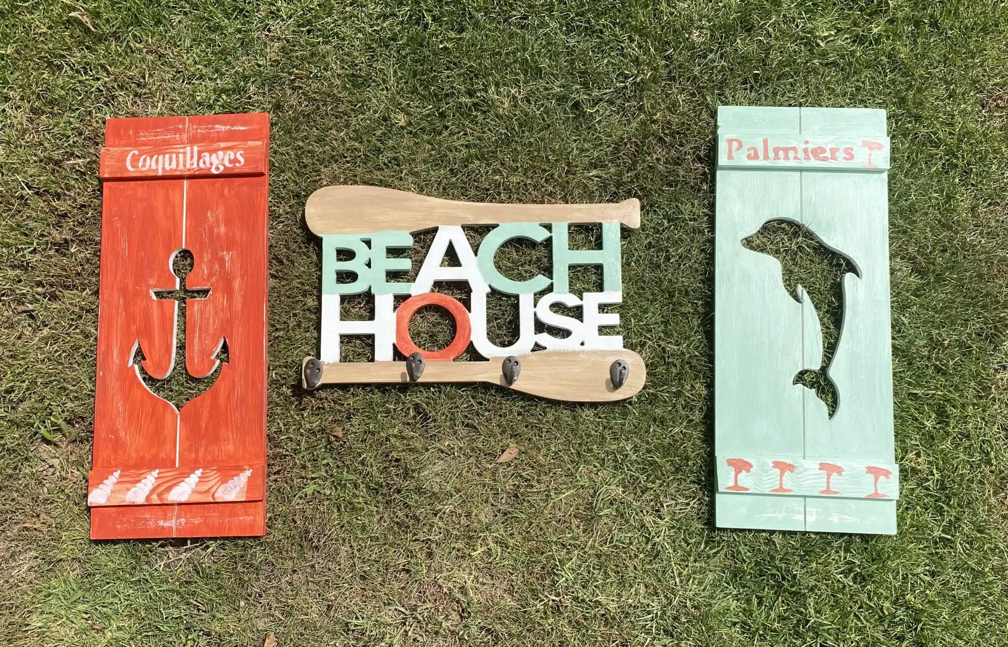Wooden set of 2 decorative summer panels and Beach House hanger