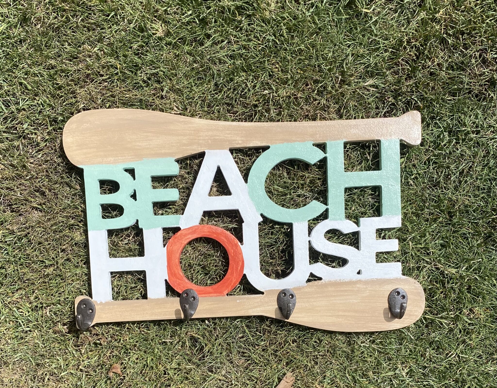 Wooden set of 2 decorative summer panels and Beach House hanger