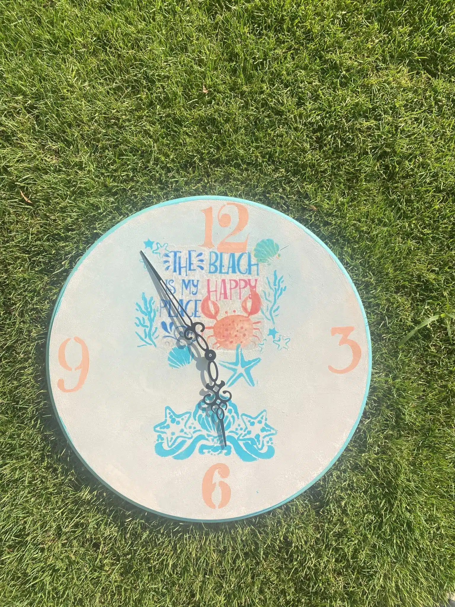 Wooden Summer Wall Clock Mint and Coral Colors