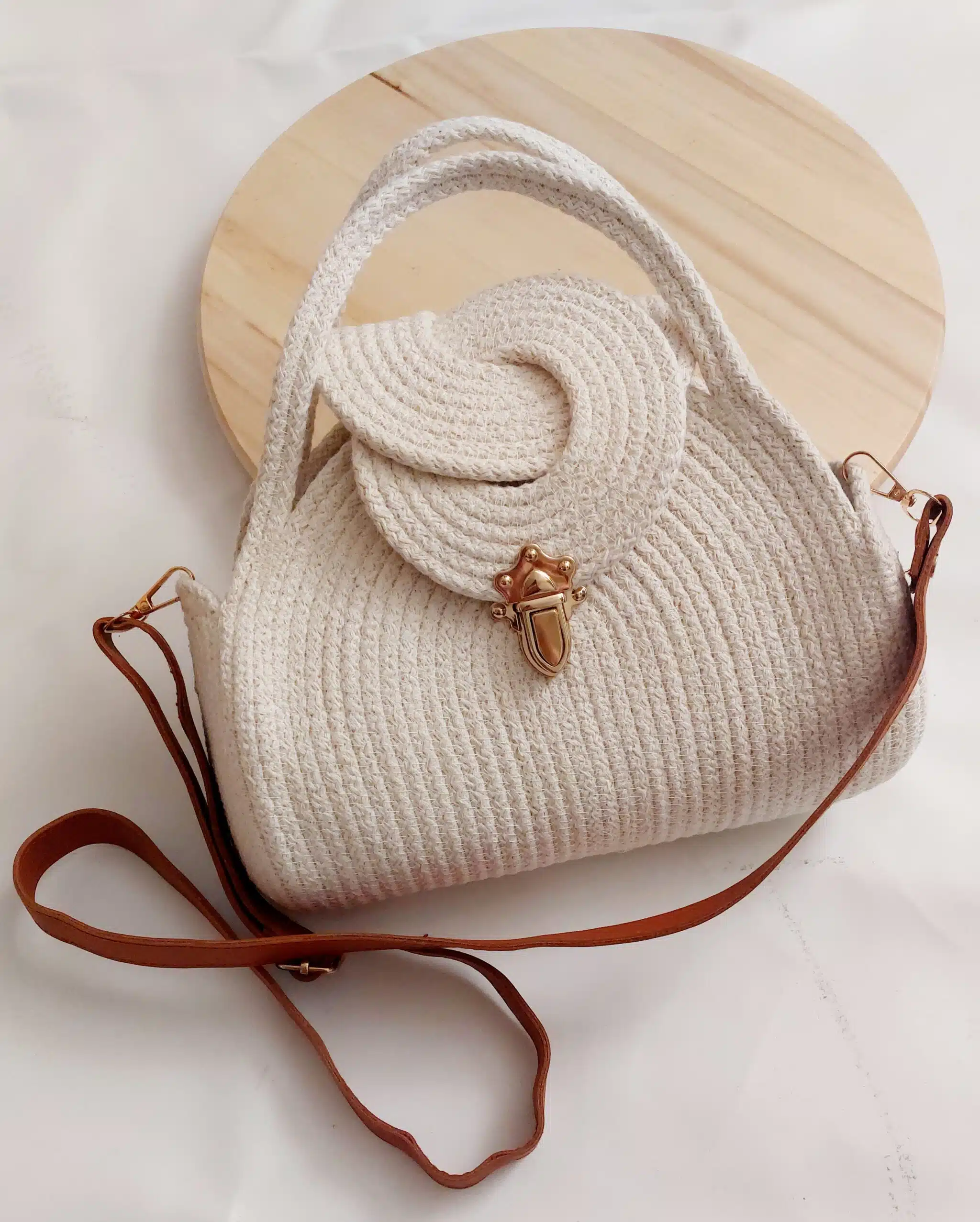 Introducing this charming handcrafted bag—where elegance meets simplicity. The textured finish, soft tones, and playful pom-pom detail make it the perfect accessory for any outfit. Handmade with love, it’s designed to carry both your essentials and your style. 👜✨