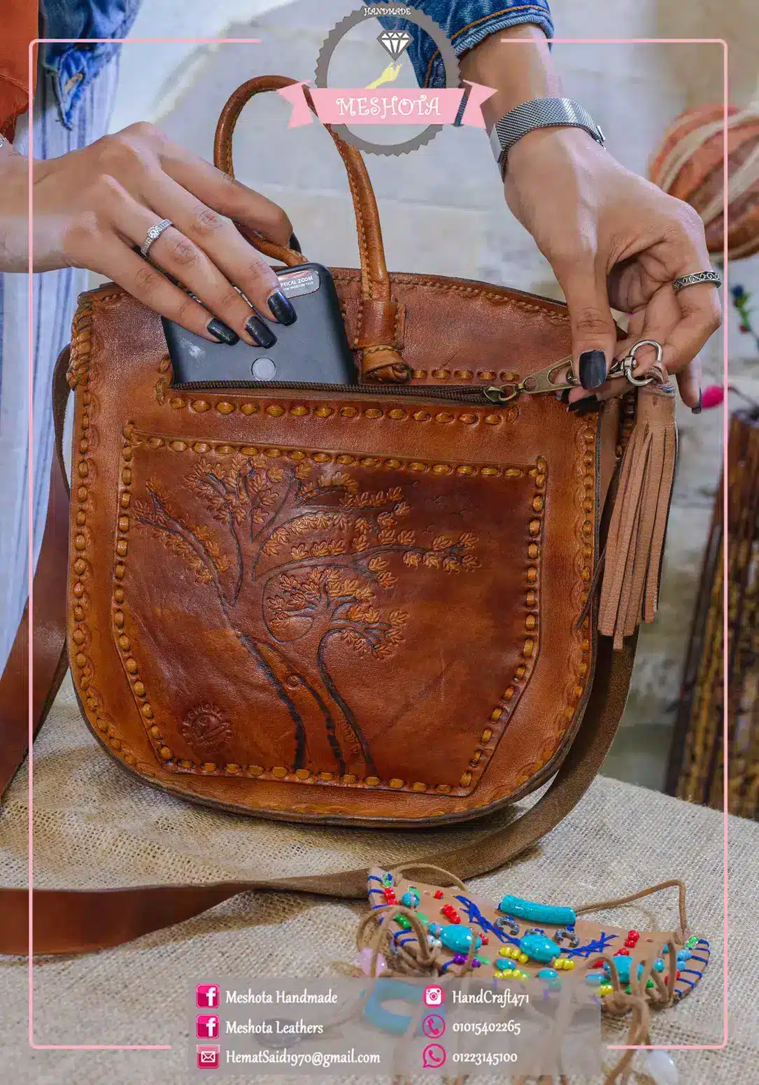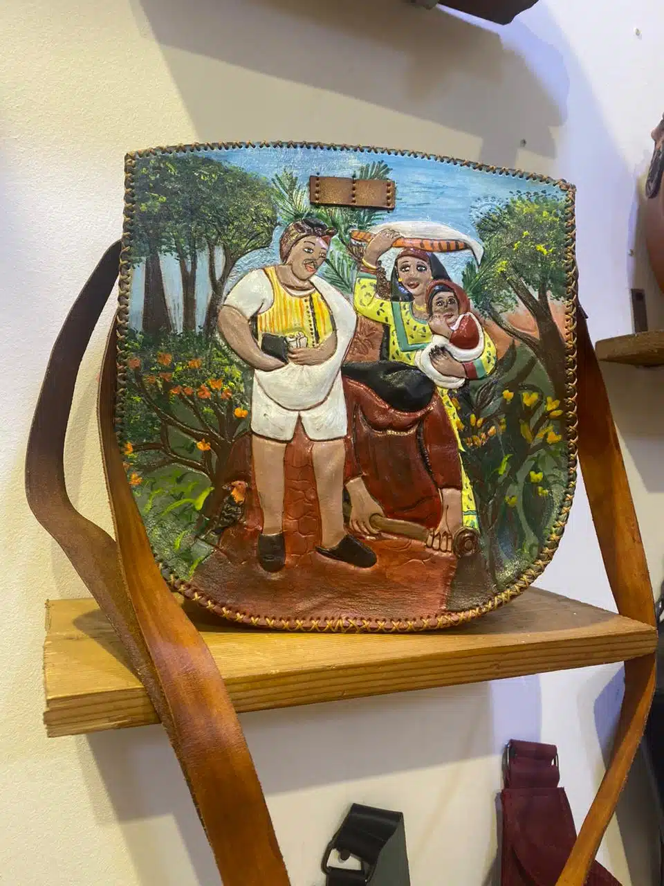 Aleather bag with daily painting from countryside