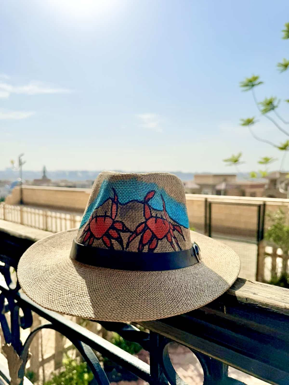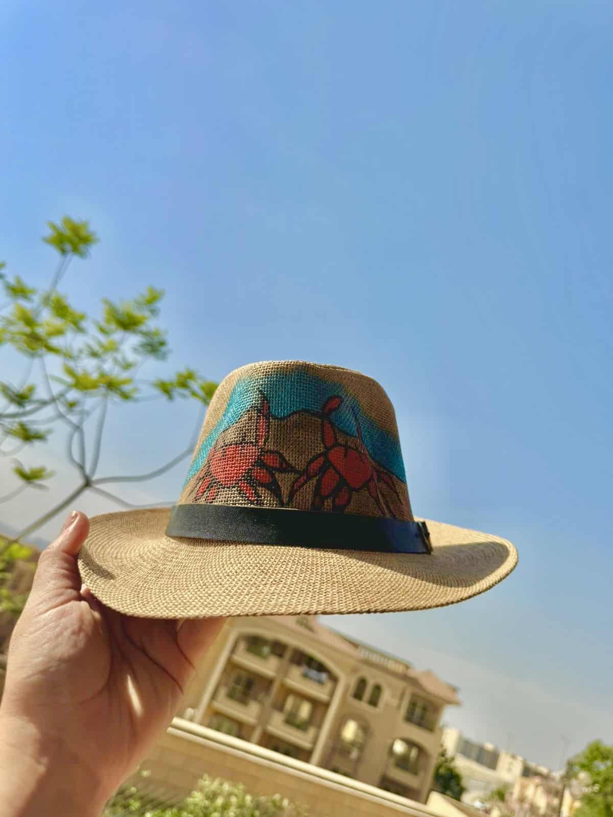 Hand painted crab summer hat