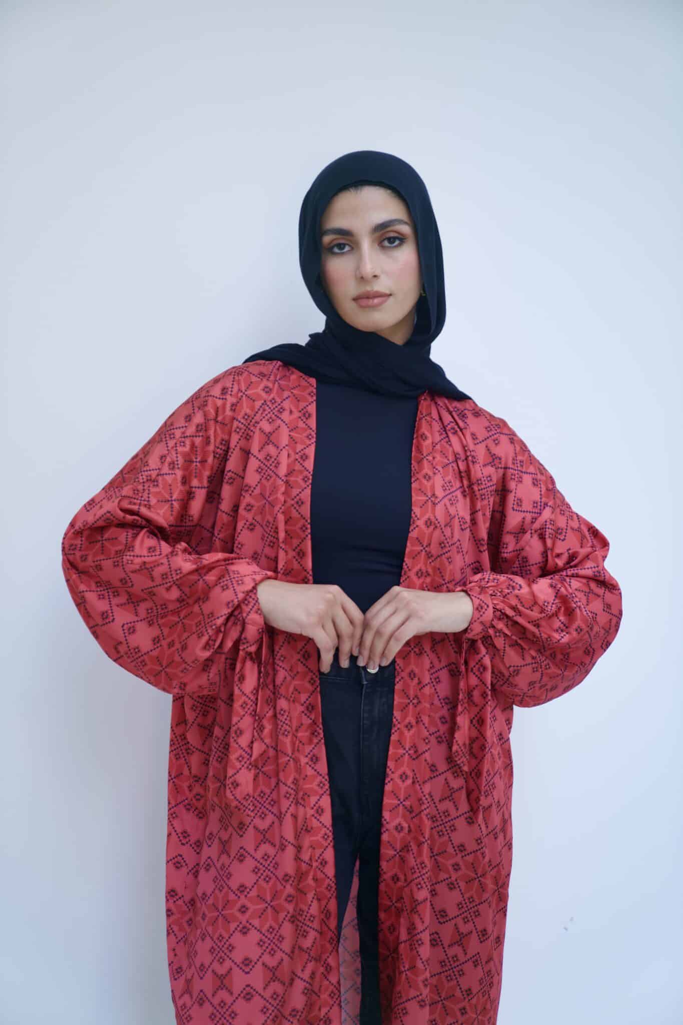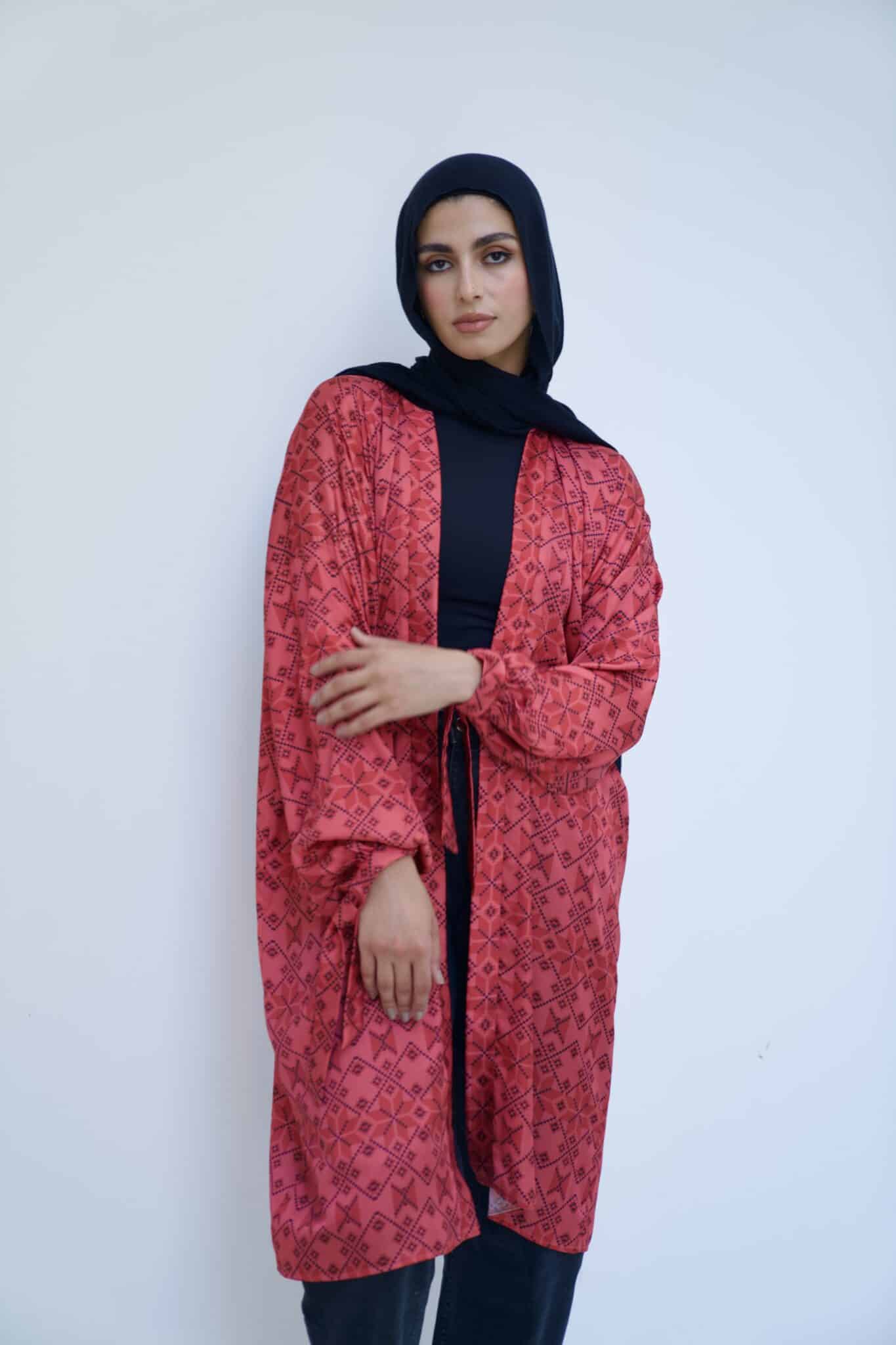 Crimson satin kimono