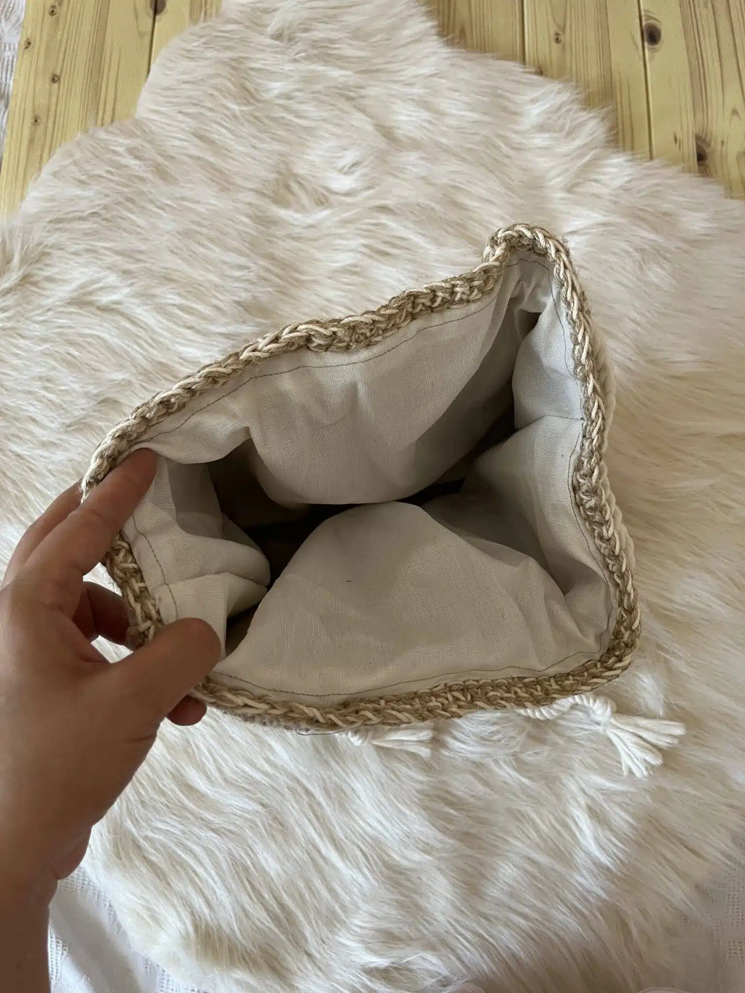 with jute and cotton yarn you can change the length of the rope if the back by rapping it to get the comfortable hold