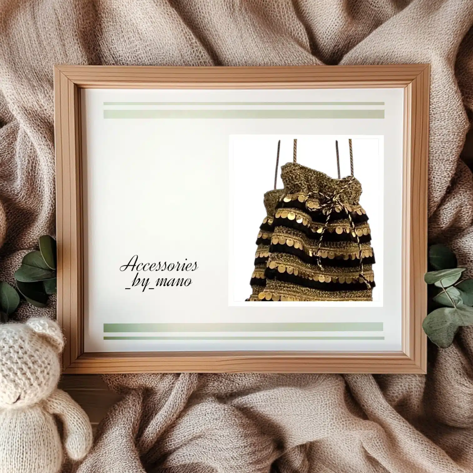 Crochet mini cross bag with black & gold details
