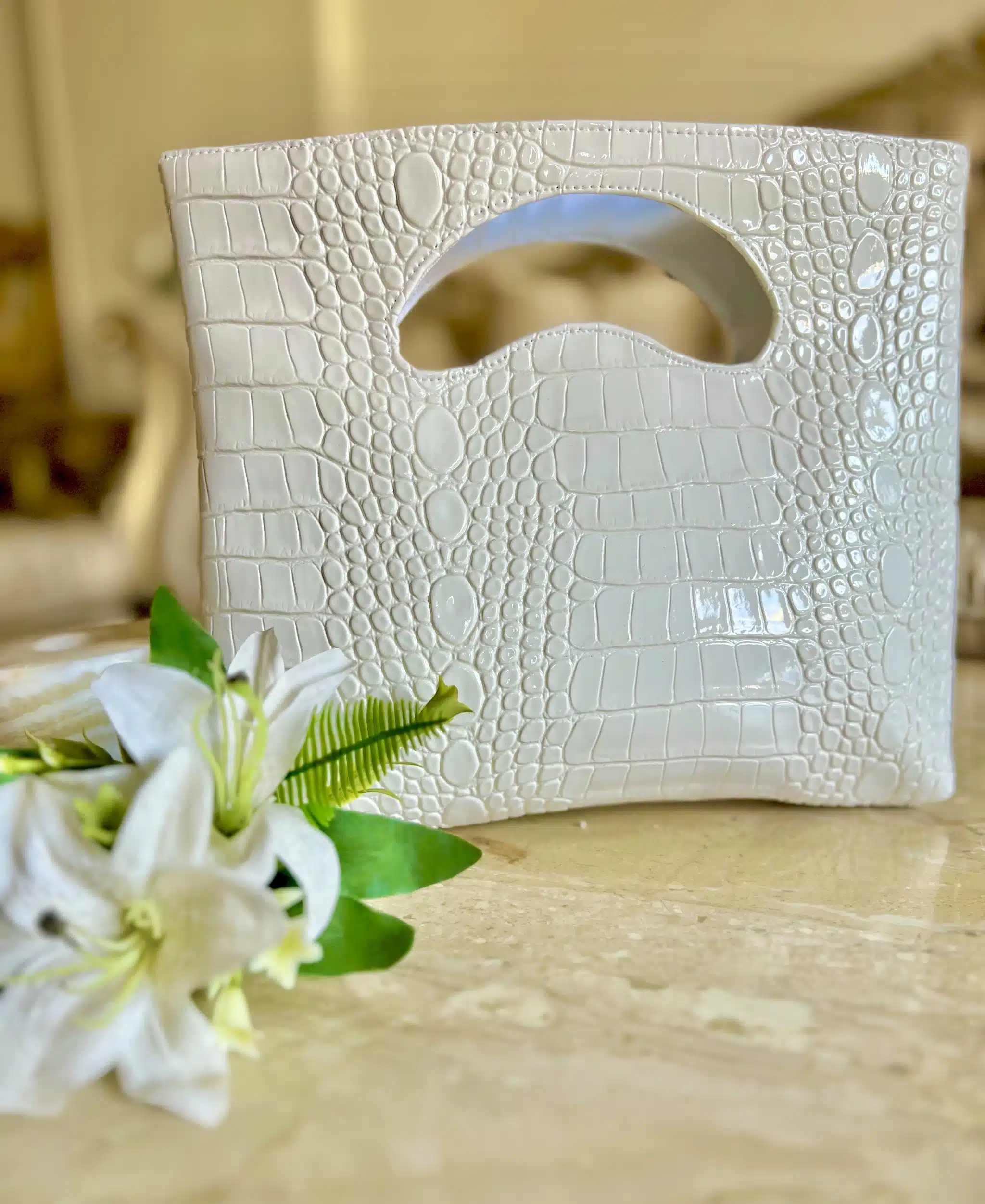Crocova Pearl – Cutout Handle Clutch.