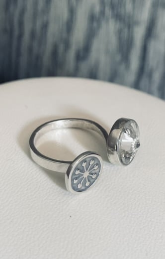 Crystal, silver ring
