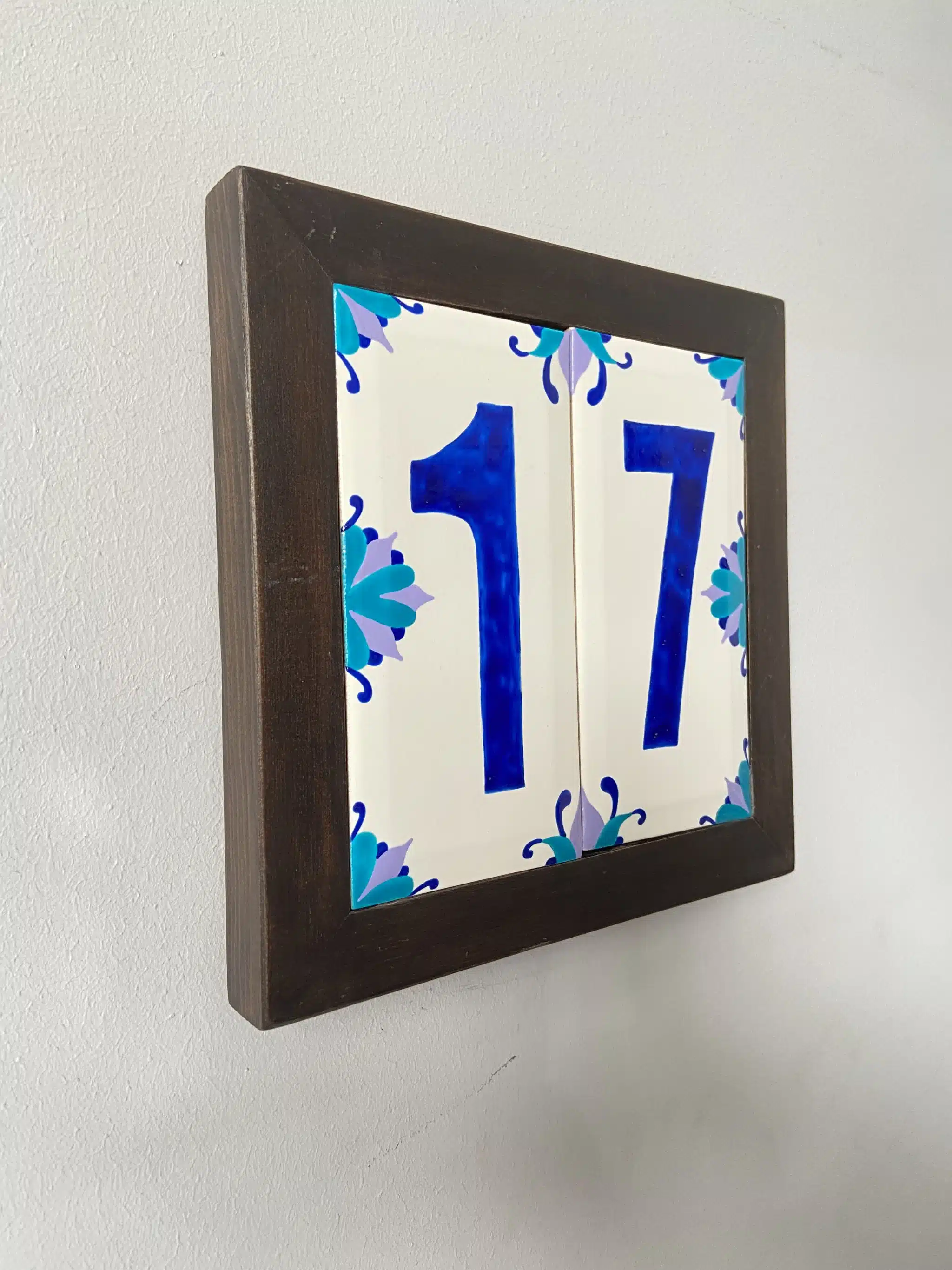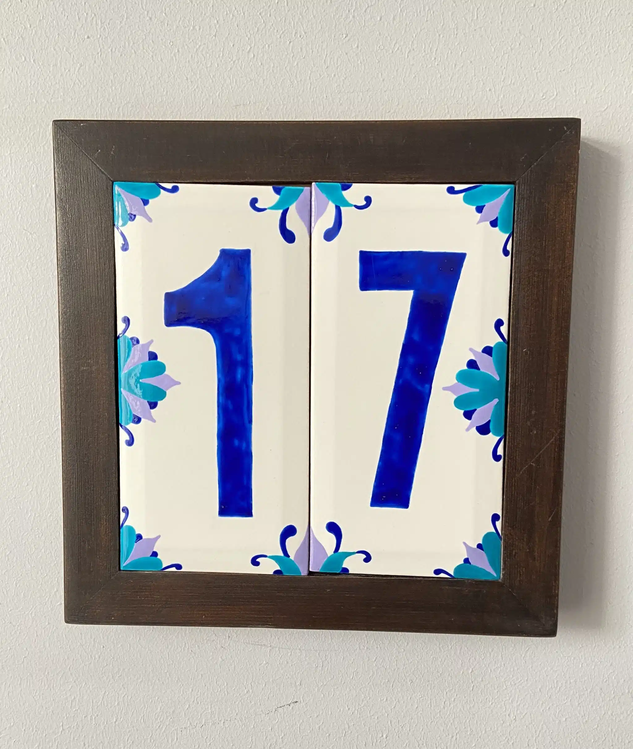 two handpainted tiles, customized, total size of the frame 25×25 cm