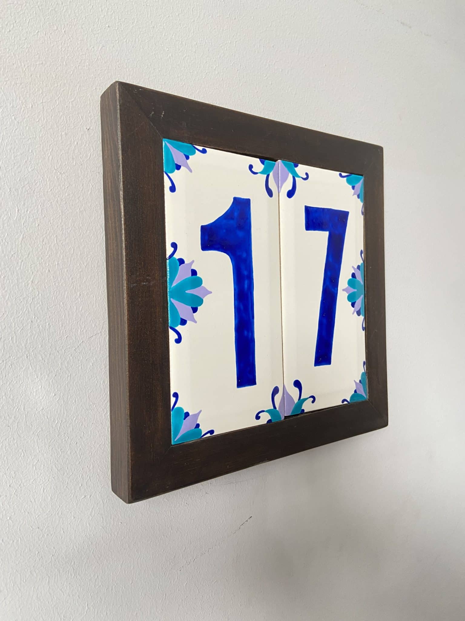 two handpainted tiles, customized, total size of the frame 25×25 cm
