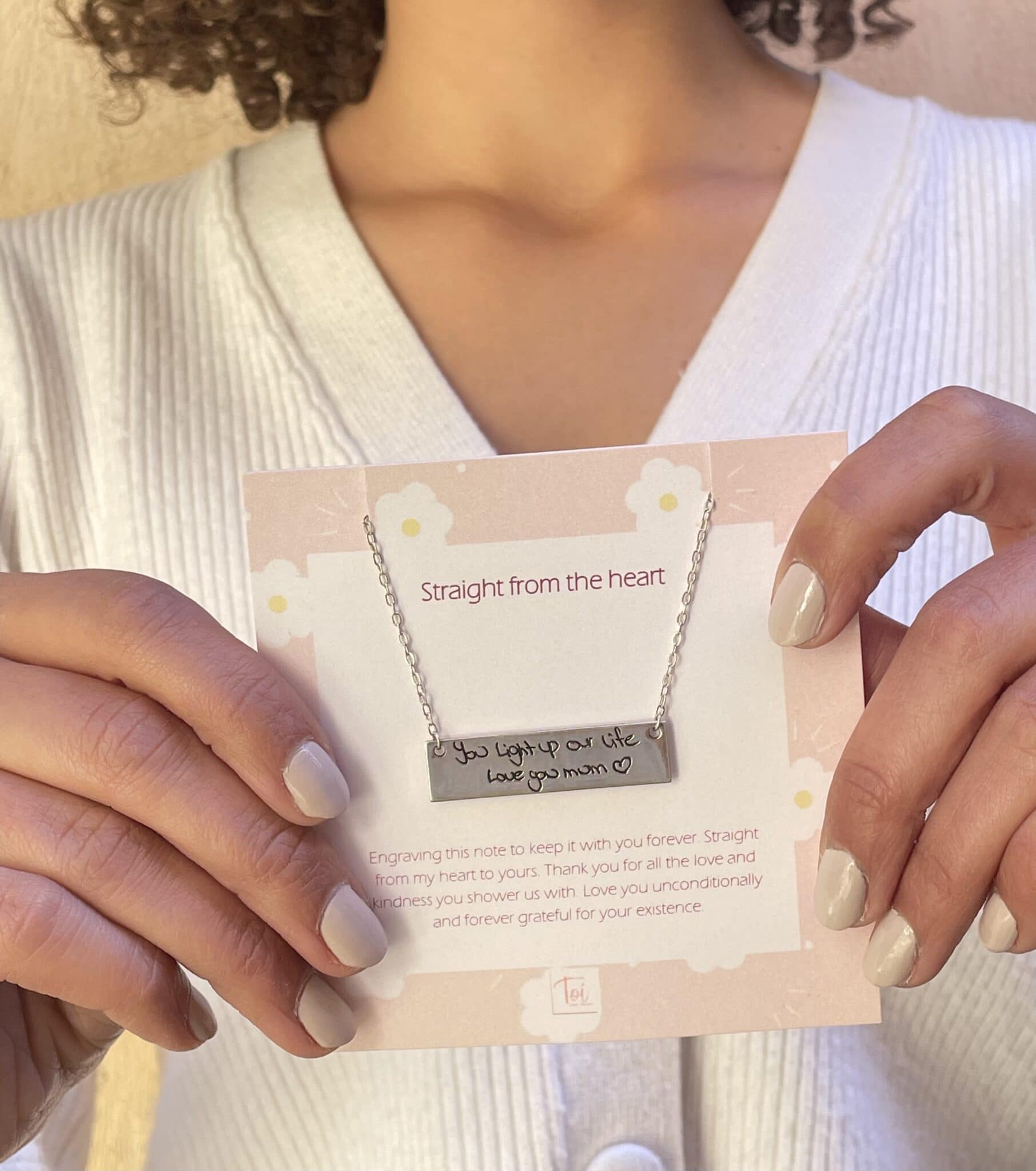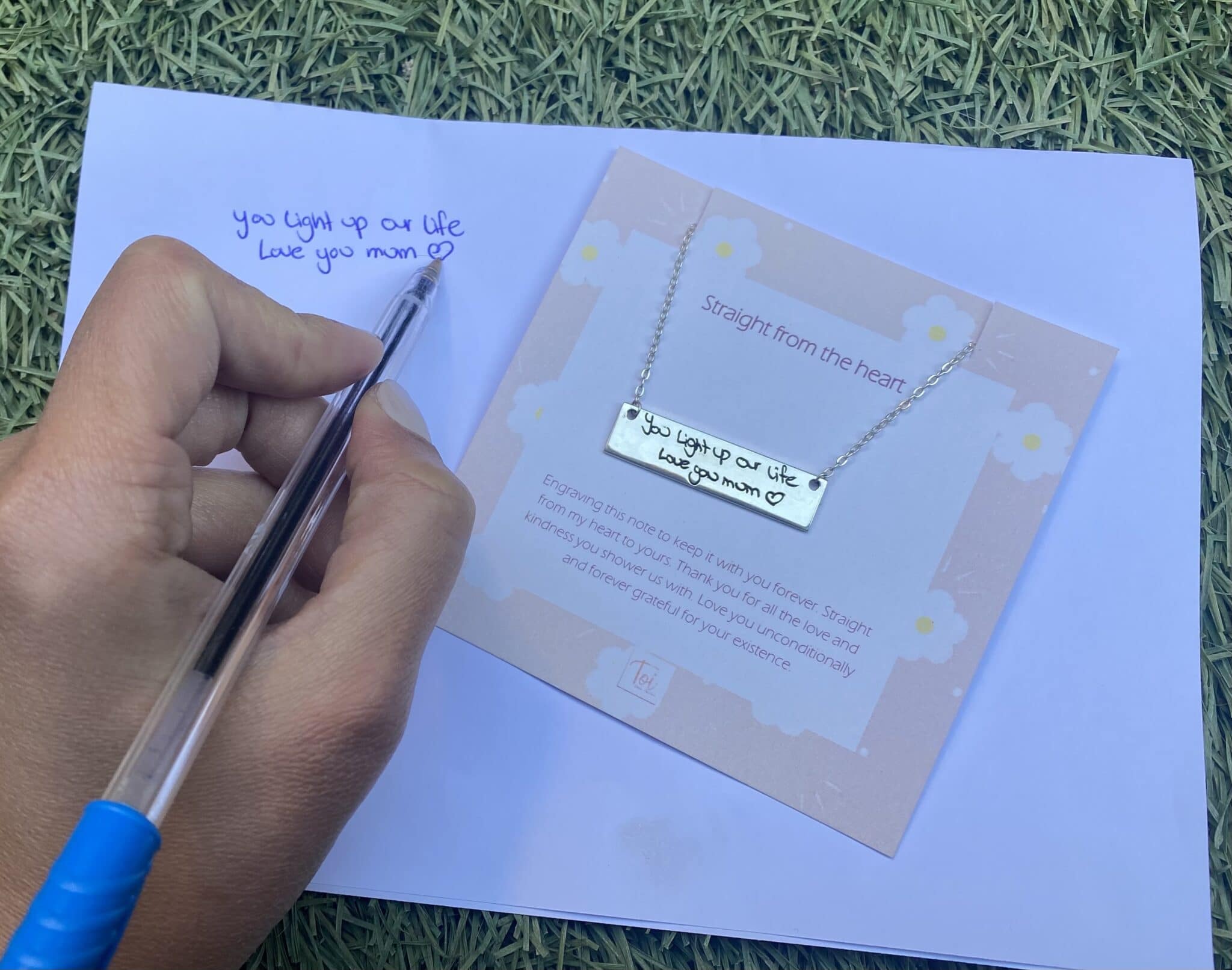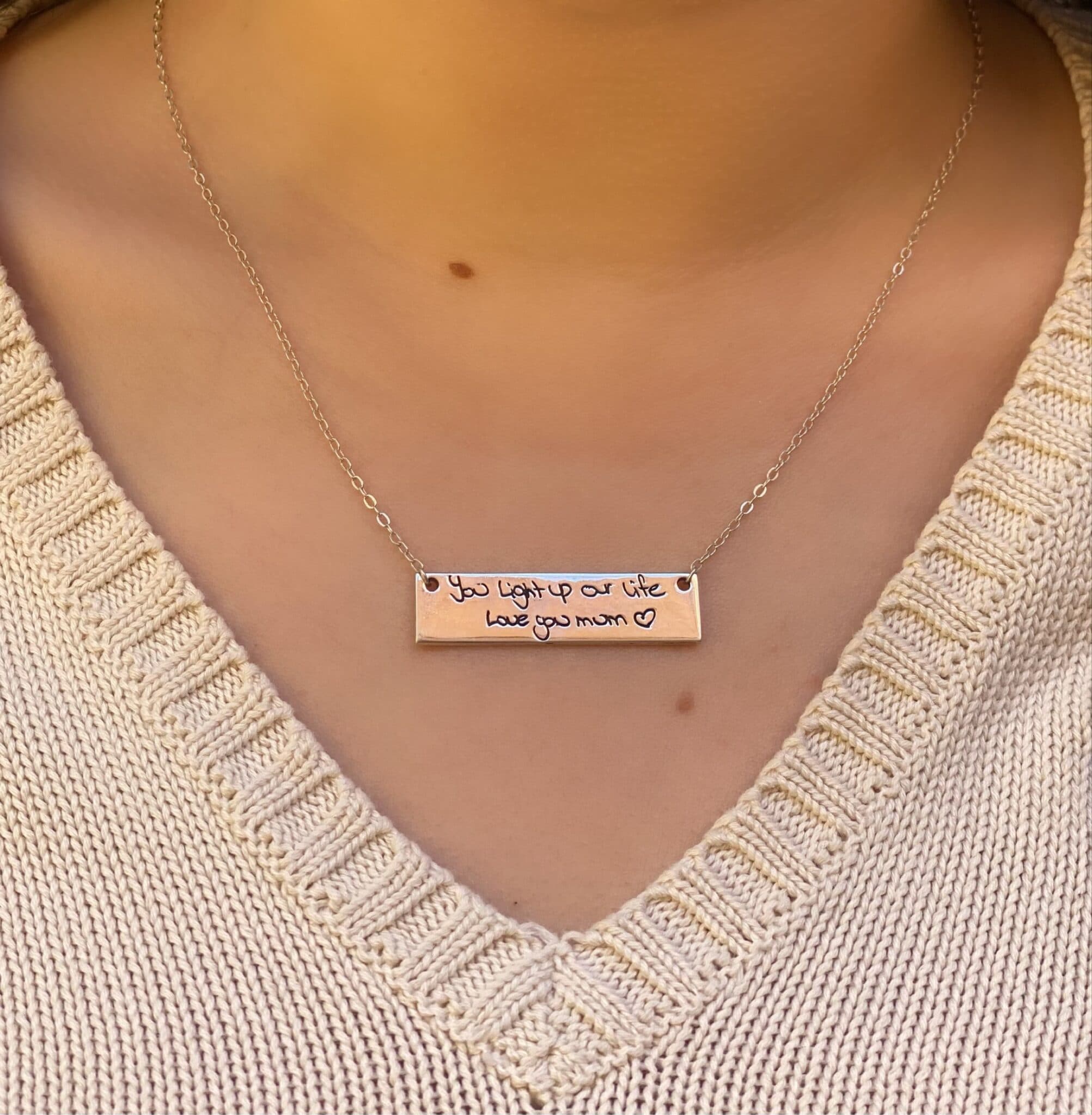 Pure 925 silver bar Necklace with a hand written note engraved Customize yours hand it out as a very special gift 🎁