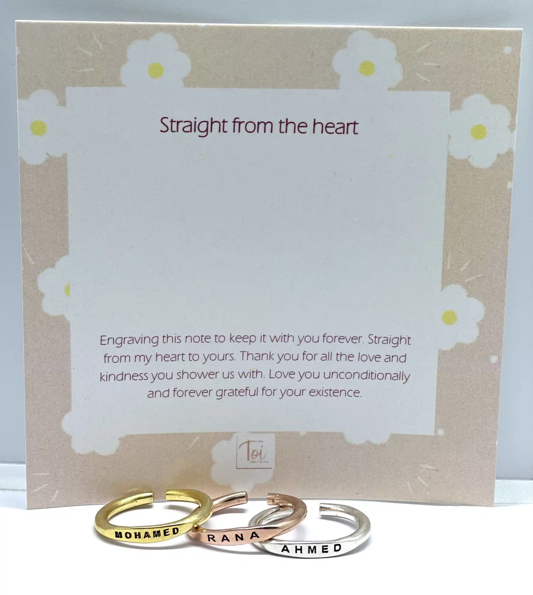 Pure 925 silver rings platted in 18k gold and rose gold holding your family names or a special text.