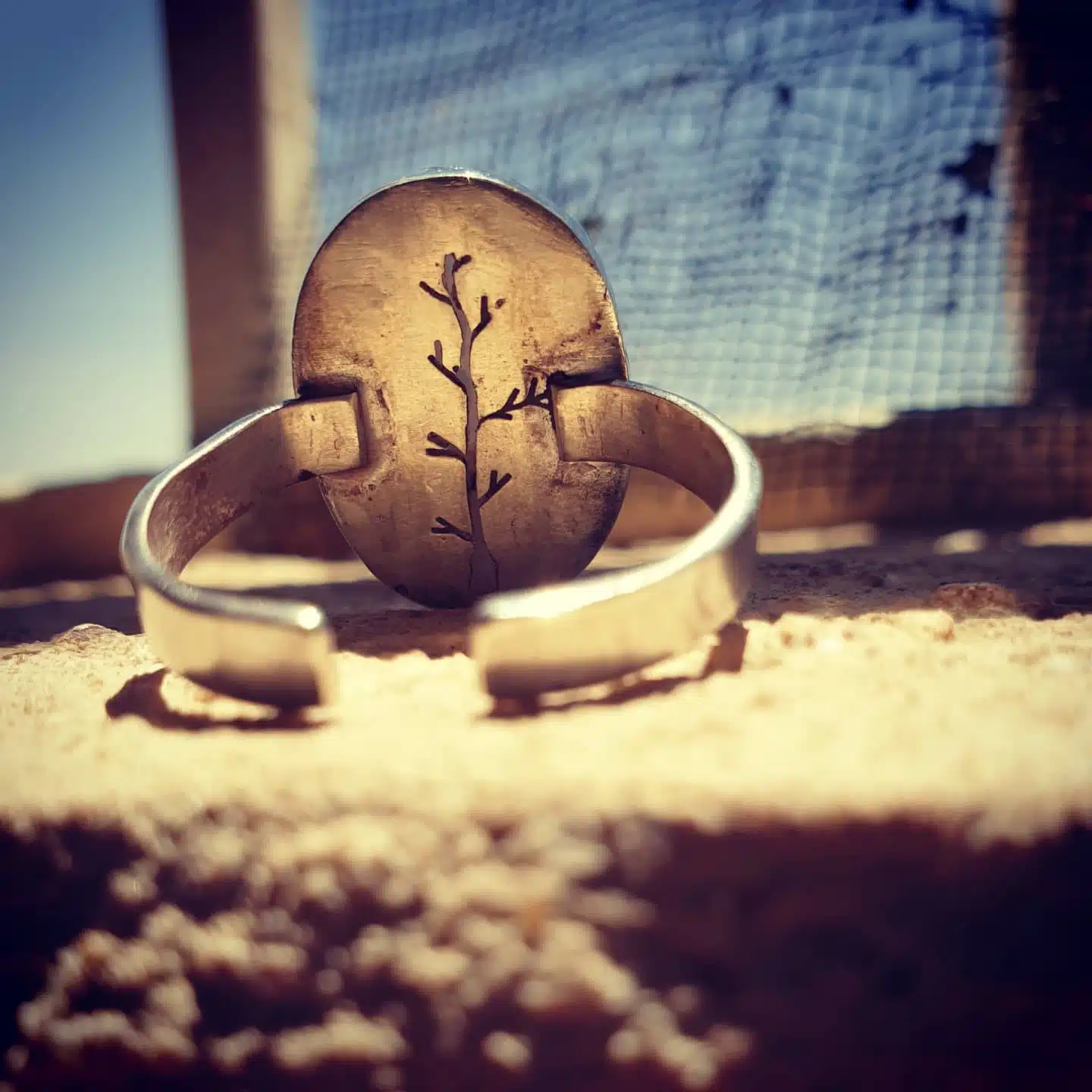 Sterling silver cut cabochon ring with tree agate stone. Please note that each piece of jewelry is one of a kind and cannot be repeated exactly the same way. New orders will be different in stones and/or a small design aspect. New orders take from 7 to 10 days to recreate. All items are fully customizable and can be done in silver or brass.