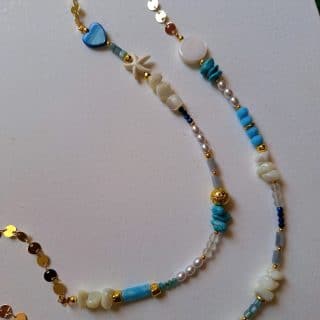 سلسلة هاندميد مصنوعة من أحجار الفيروز و مرجان أحمر طبيعي مع دلاية مطلية باللون الذهبي غير قابلة .للصدأ ولا يتغير لونها قفل من الاستانلس ستيل