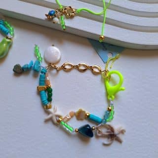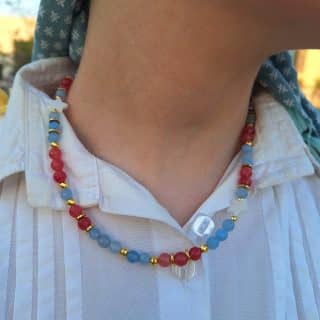 سلسلة هاندميد مصنوعة من أحجار الفيروز و مرجان أحمر طبيعي مع دلاية مطلية باللون الذهبي غير قابلة .للصدأ ولا يتغير لونها قفل من الاستانلس ستيل