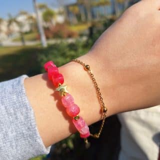 سلسلة هاندميد مصنوعة من أحجار الفيروز و مرجان أحمر طبيعي مع دلاية مطلية باللون الذهبي غير قابلة .للصدأ ولا يتغير لونها قفل من الاستانلس ستيل