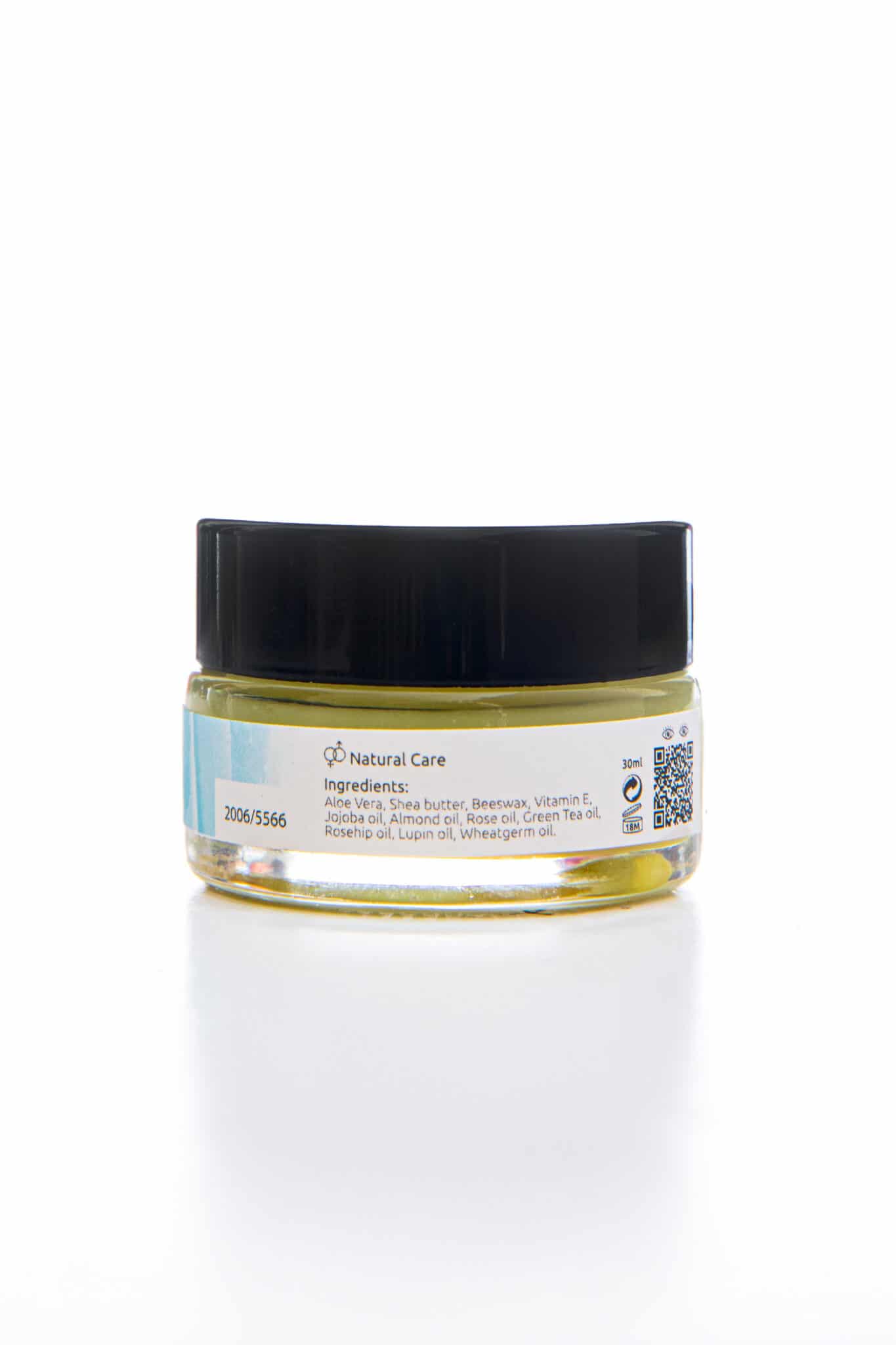 Aloe Vera, Shea butter, Beeswax, Vitamin E oil, Jojoba oil, Almond oil, Rose oil, Green Tea oil, Rosehip oil, Lupin oil, Wheatgerm oil.