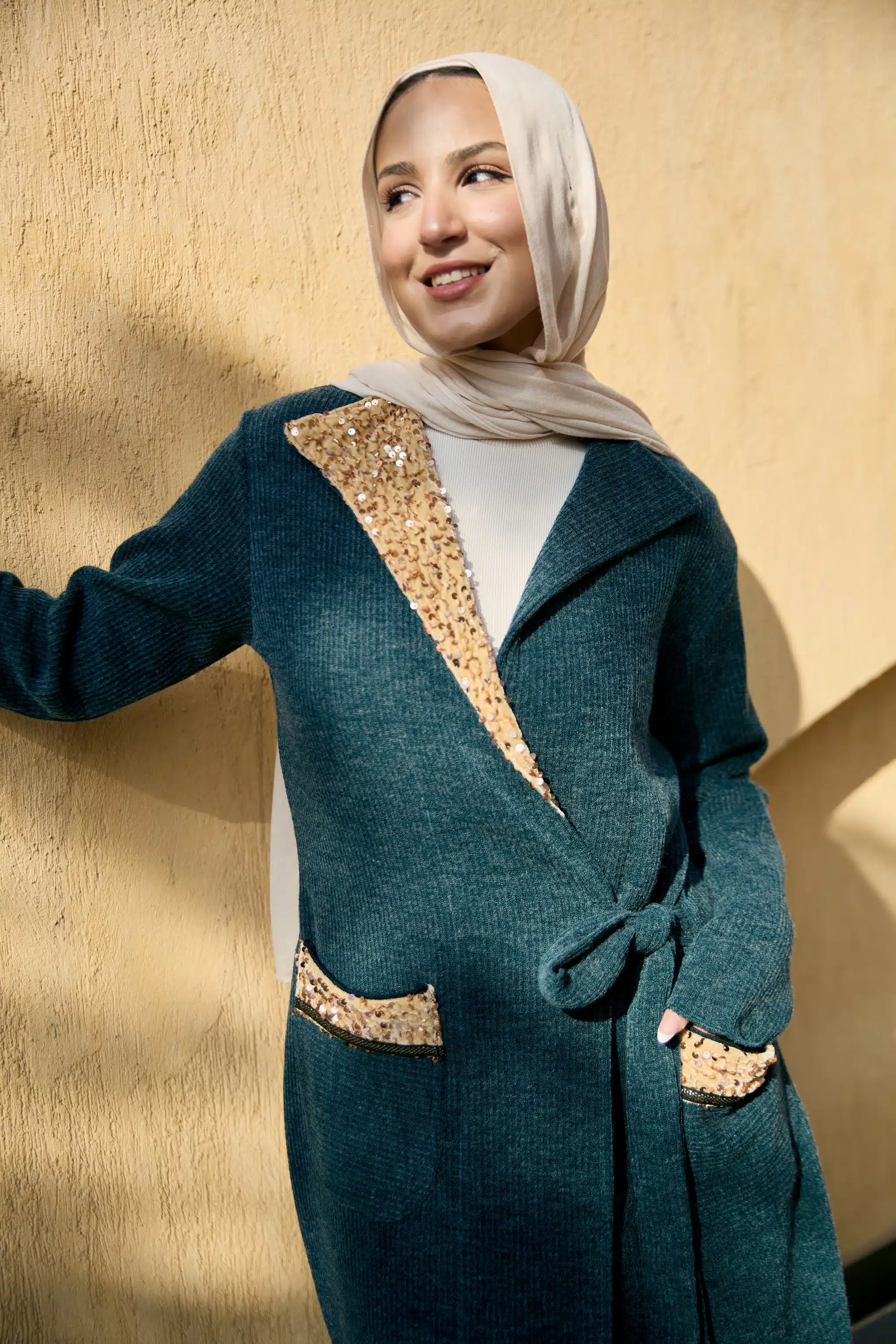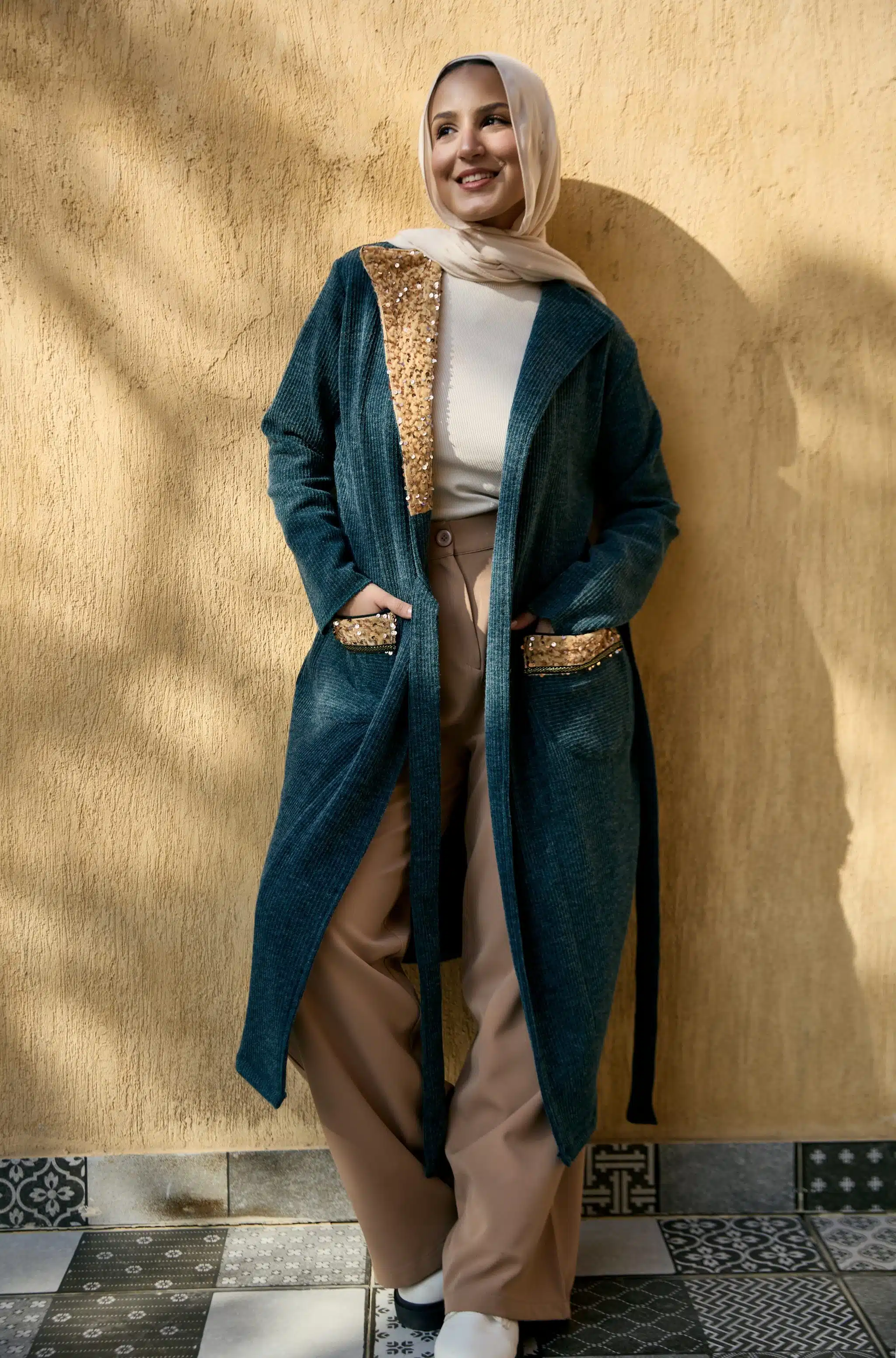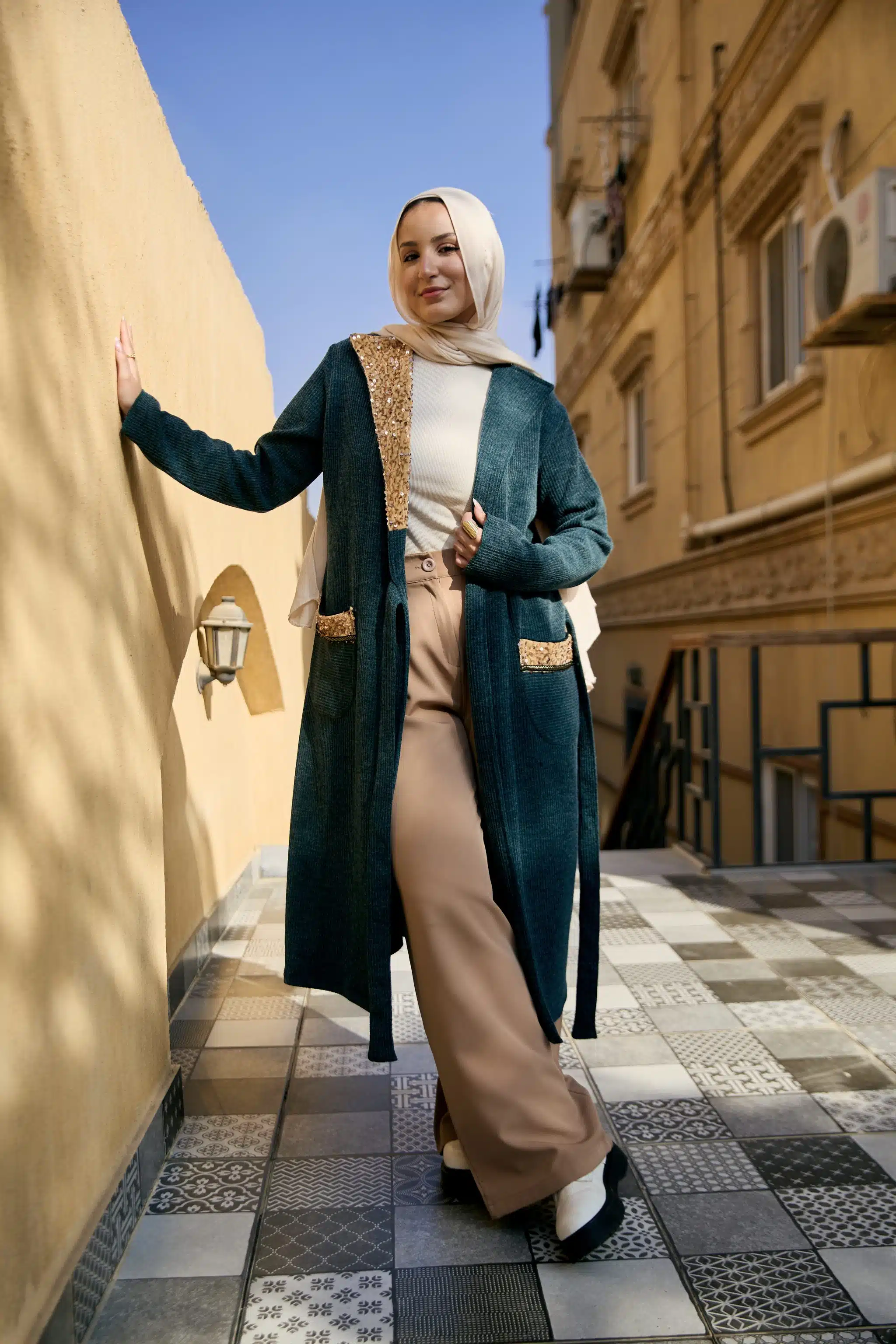 -Dark green soft wool lycra fabric cardigan with touch of Byte material