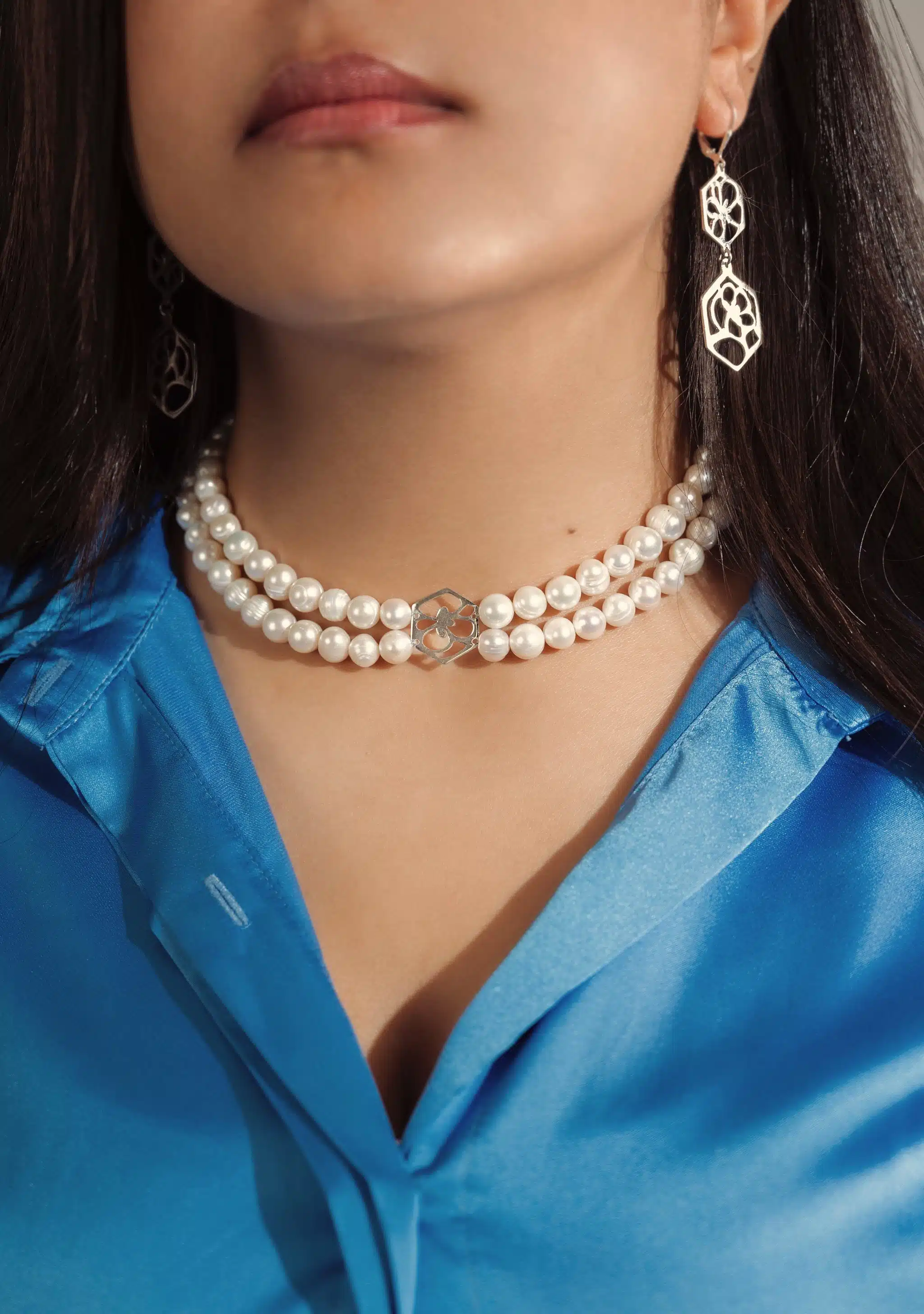 The celebrated choker design handcrafted with luminous, high-grade freshwater pearls. The Camellia flower motif is embraced by a harmonious arrangement of pearls perfect for the most refined taste. Featuring our signature toggle lock.