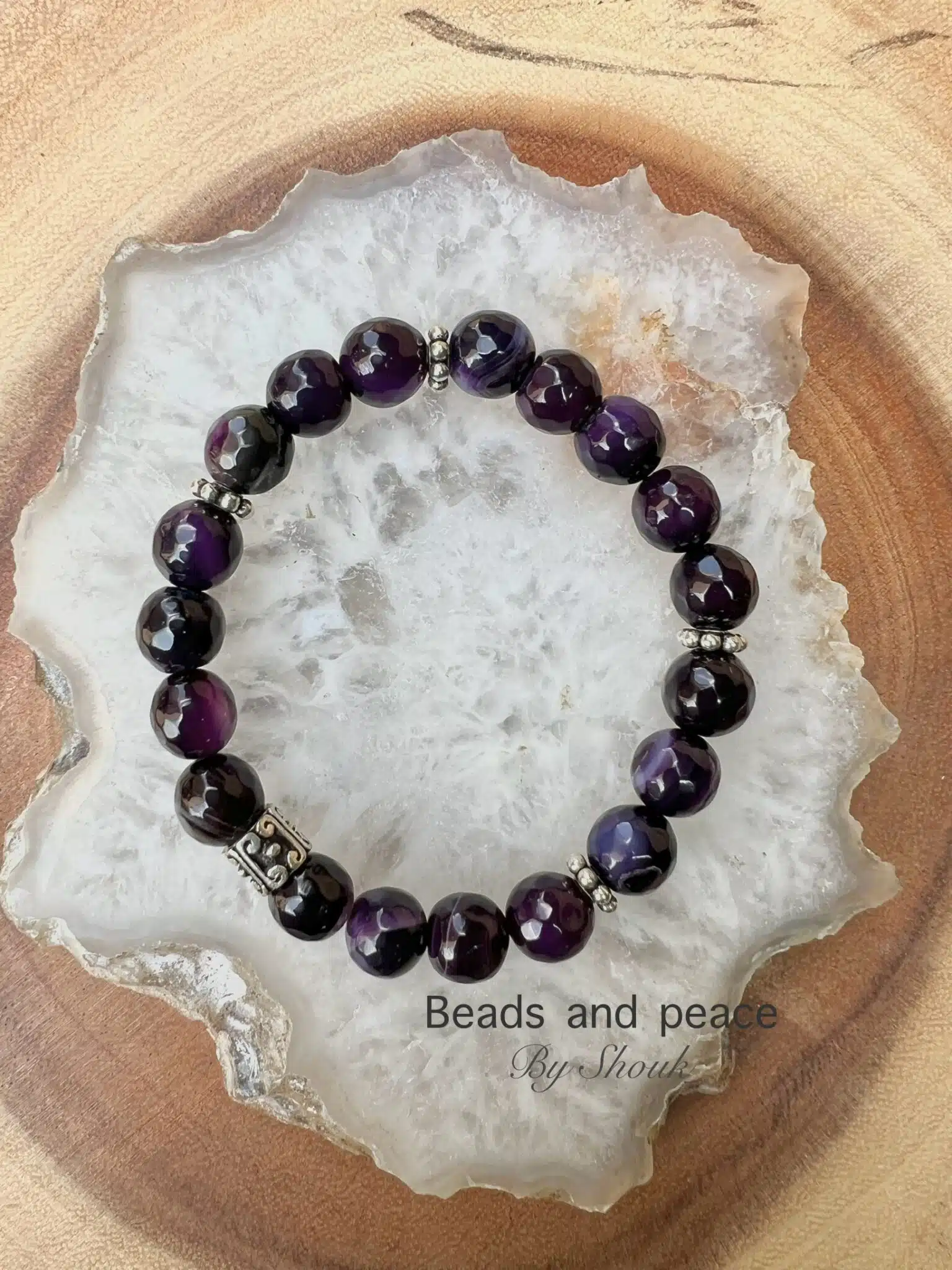 It’s one of kind handmade stretch bracelet, made with 10mm deep purple amethyst beads, sterling silver spacer beads. It’s made with high quality elastic cord to make it easy for you to wear.