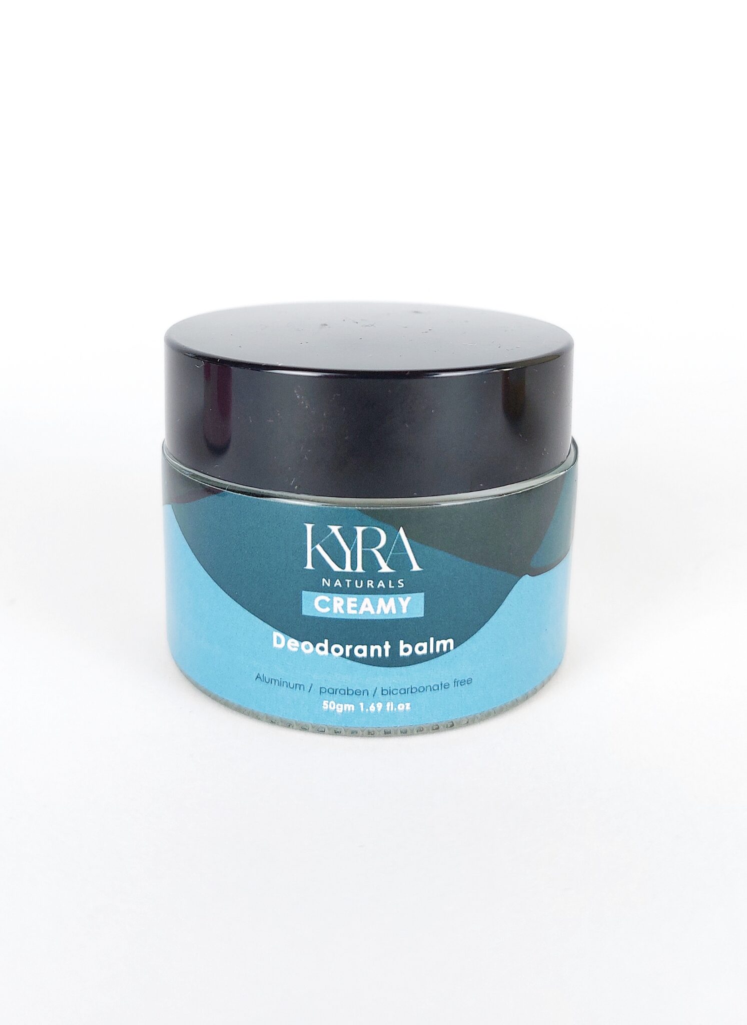 this deodorant is aluminum free, paraben free, bicarbonate free..it absorbs excess sweat naturally and has natural antibacterial effect due to virgin coconut oil.