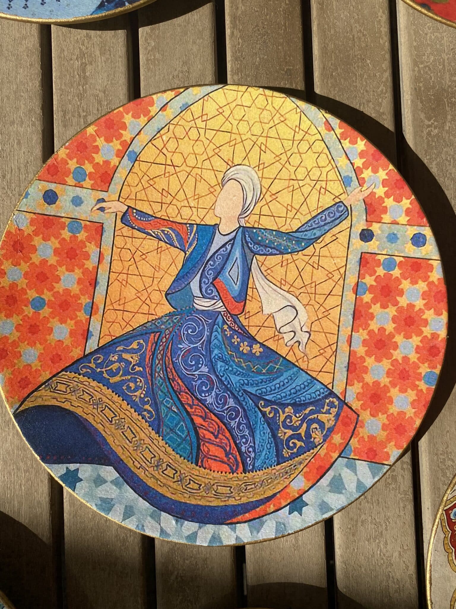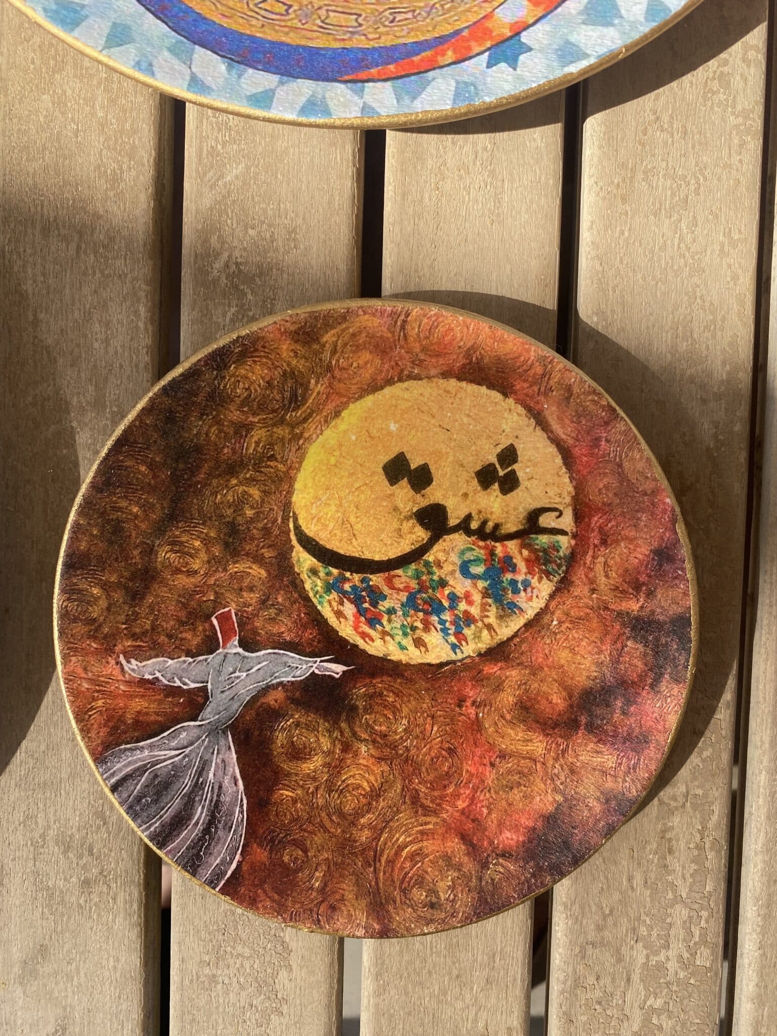 Decoupaged porcelain wall plates Dervish and Calligraphy theme