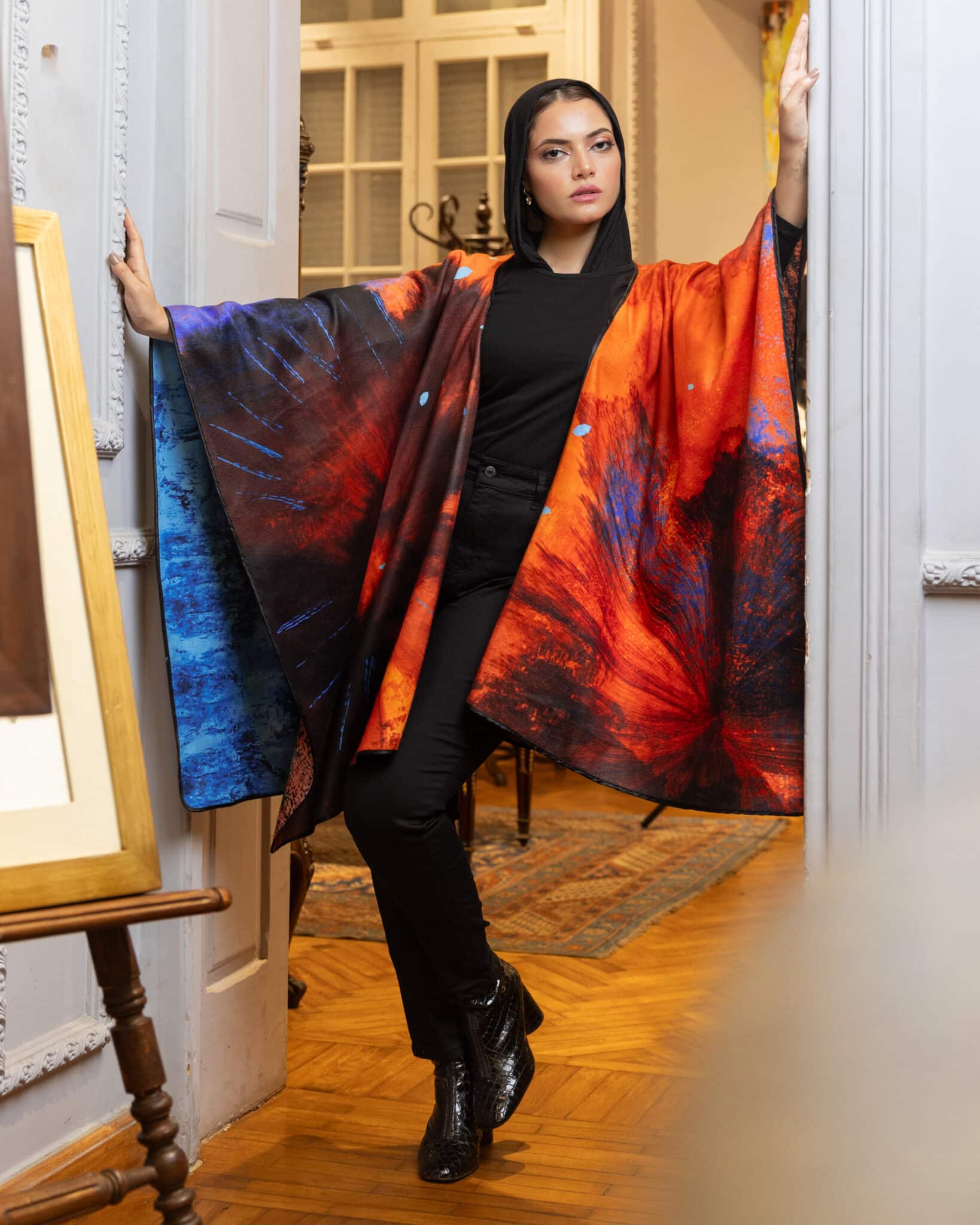 Double Face winter cape, each side has different design.