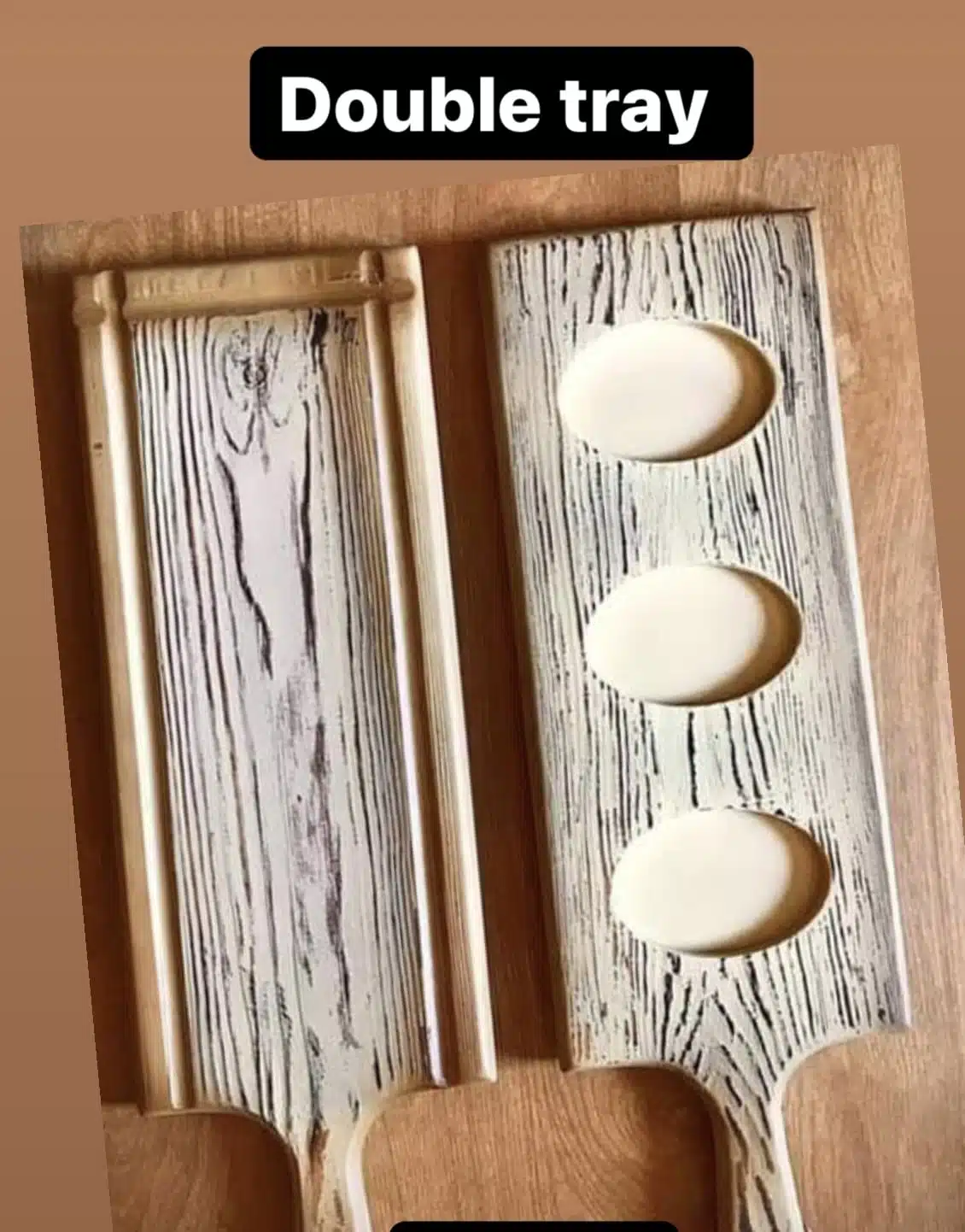 - Double face cheese platter. You can use it as nuts tray or cheese platter.