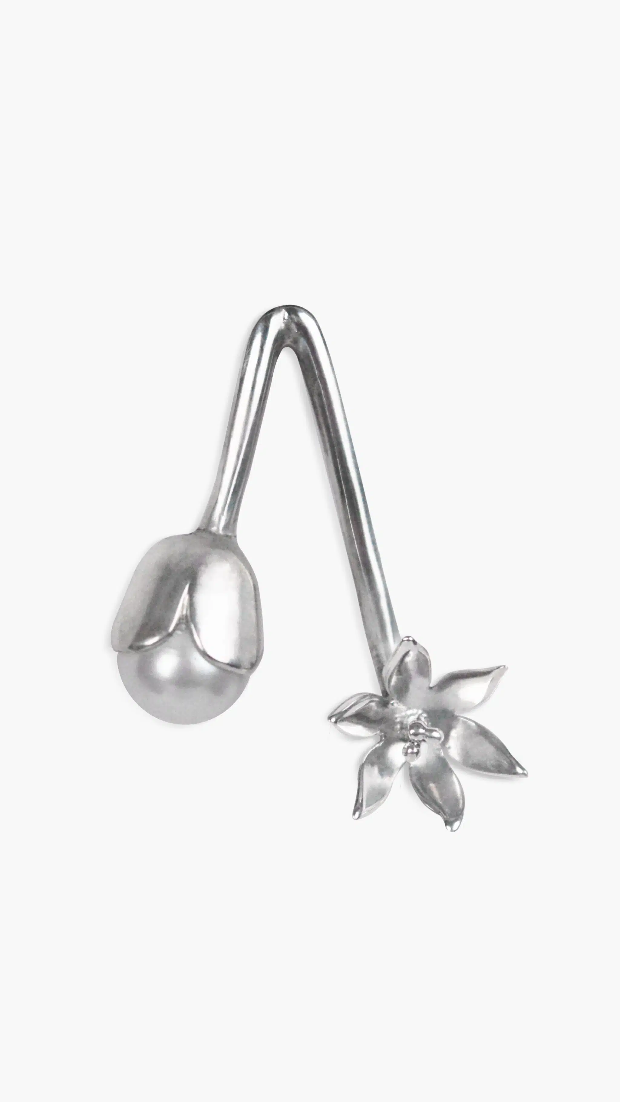 These sterling silver drop earrings feature bell-shaped floral forms accented with freshwater pearls. ligt and graceful, they echo the collection’s floral theme with a modern, romantic twist. Mismatch for a playful look or match the same shape for a more classic look.